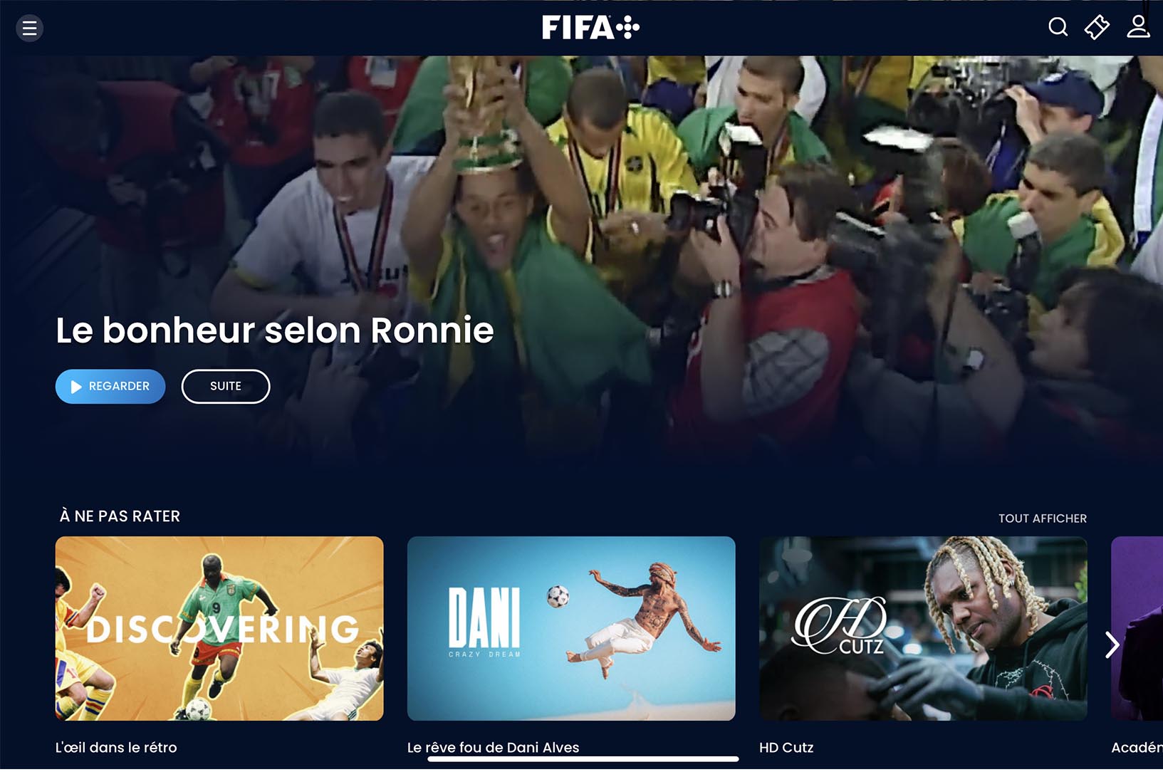 Pour tout de même se démarquer, FIFA+ mise sur des documentaires, dont un sur Ronaldinho déjà disponible. D’anciens matchs sont aussi proposés, mais pas les plus récents (de la Coupe du monde 2018, nous avons trouvé des buts, mais pas les matchs). En ce qui concerne la prochaine World Cup, au Qatar, elle ne sera pas diffusée sur FIFA+.