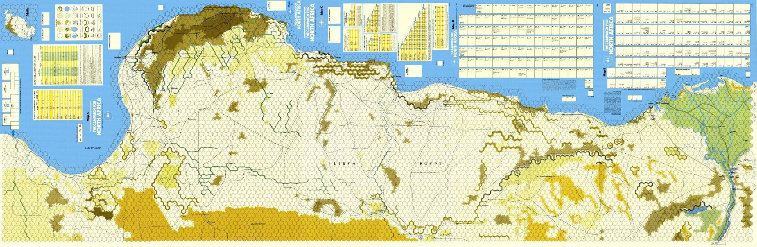 À votre avis, combien dure une partie de The Campaign for North Africa ? Quelle que soit la valeur à laquelle vous avez pensé, vous êtes loin du compte. L’estimation de la durée est en effet comprise entre 1 000 et 1 500 heures. Entre 40 et 60 jours sans interruption. Approximativement deux mois à ne faire que ça, sans manger, dormir ou prendre la moindre pause. Pour rester un peu plus réaliste (façon de parler), si vous vous réunissez par session de trois heures, deux fois par mois, vous en verriez le bout en une vingtaine d’années.