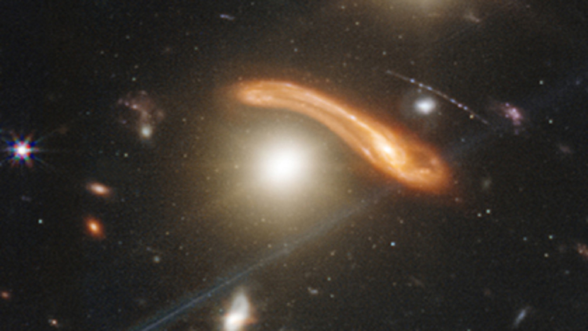 Les étoiles sont relativement proches de nous, même si on ne connaît pas leur distance exacte. Elles sont en tout cas bien plus proches que les galaxies, et apparaissent d’ailleurs en plus gros sur l’image. Elles pourront certainement être étudiées plus en détail avec d’autres observations du télescope, mais ce qui nous intéresse davantage, ce sont plutôt les galaxies derrière.