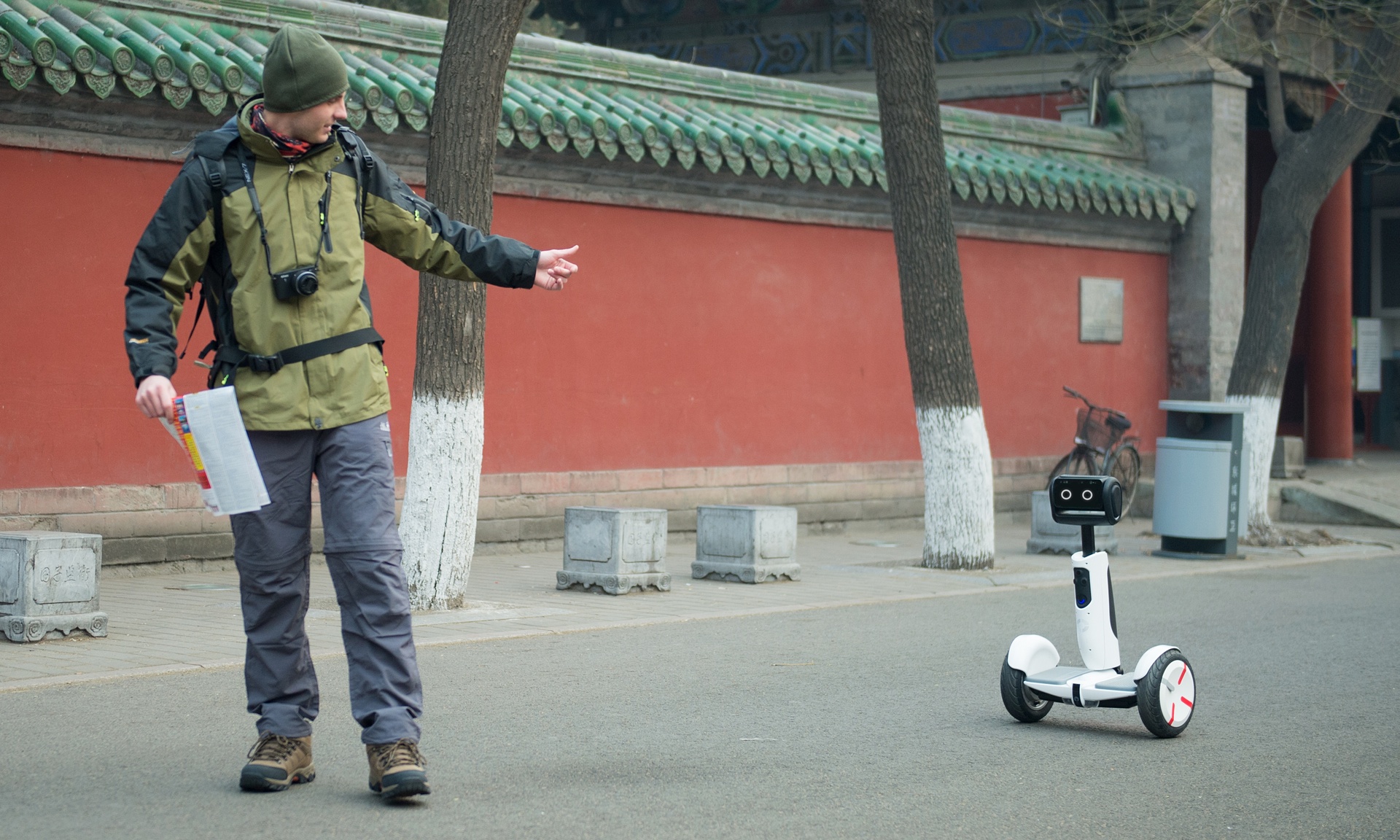 Plus exactement, il s’agit d’un Segway somme toute classique, de nouvelle génération, qui se pilote sans guidon mais qui peut se transformer en petit robot quand vous n’êtes pas dessus. En appuyant sur un bouton, la tête du robot se déploie et il vous regarde de ses grands yeux béats, comme si vous étiez son Créateur. Ninebot Segway, c’est son nom, pourra alors répondre à des ordres simples pour vous suivre ou aller dans un lieu que vous lui aurez indiqué. Équipé d’une caméra Realsense d’Intel qui lui permet de voir en profondeur, il ne devrait pas trop avoir de mal pour éviter les meubles et les passants.