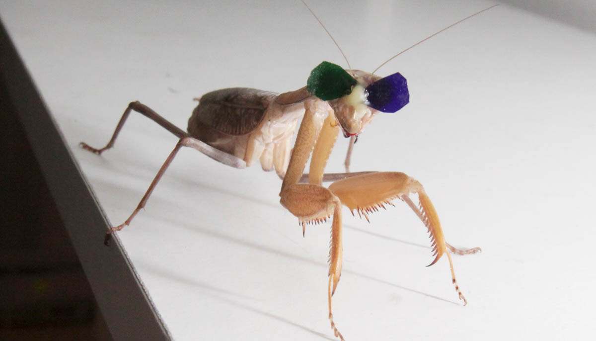 S’il y a bien une chose qu’on ne regrette pas, ce sont les lunettes 3D. Ces objets lourds et inconfortables ont fort heureusement déserté suffisamment de séances de cinéma pour permettre à qui le souhaite de voir un film sans cette amélioration. Contrairement aux humains, les pauvres mantes religieuses, elles, retournent au premier stade de la technologie : des scientifiques de l’université de Newcastle ont construit de toutes petites lunettes composées de cire d’abeille et de filtres bleu et vert pour expérimenter la vision de ces insectes.