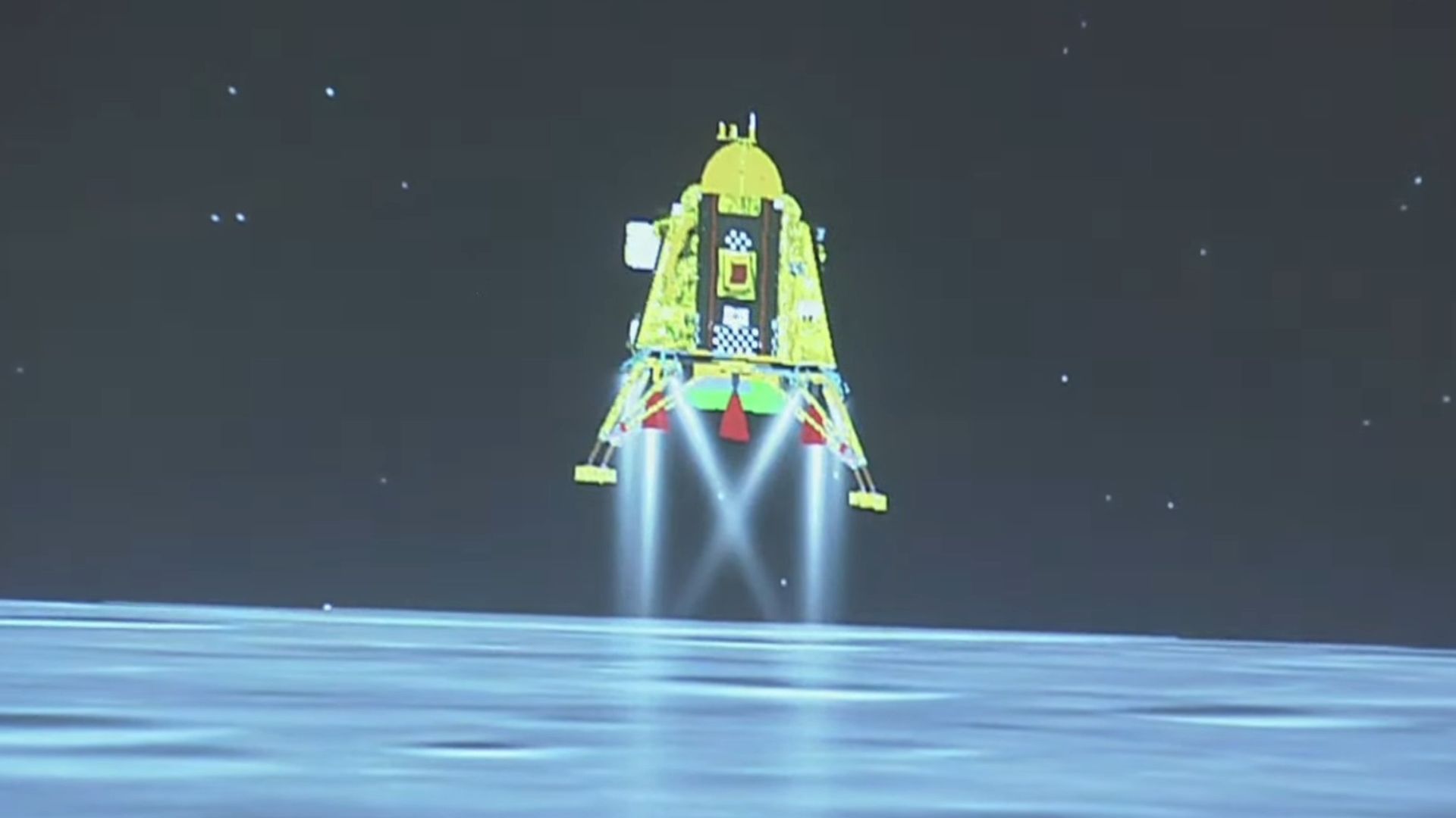 « Chandrayaan-3 a atterri en douceur avec succès sur la Lune », se réjouit l’agence spatiale indienne IRSO, sur son compte Twitter :