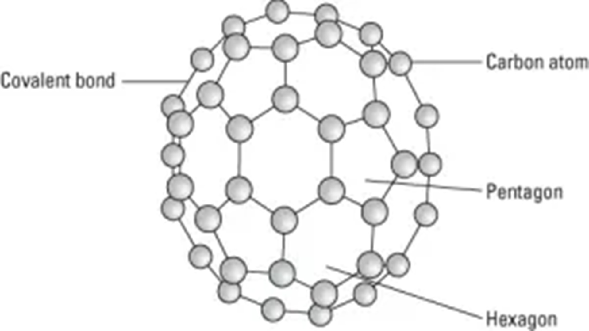 Il s’agit d’une structure particulière du carbone prenant la forme caractéristique d’un ballon de foot microscopique dans lequel des atomes s’agrègent en un réseau sphérique, en alvéole. Le plus commun des fullerènes de ce type est surnommé buckyballe, en hommage à Richard Buckminster Fuller, l’architecte inventeur du dôme géodésique (le même que l’on peut trouver à la Géode, à Paris).