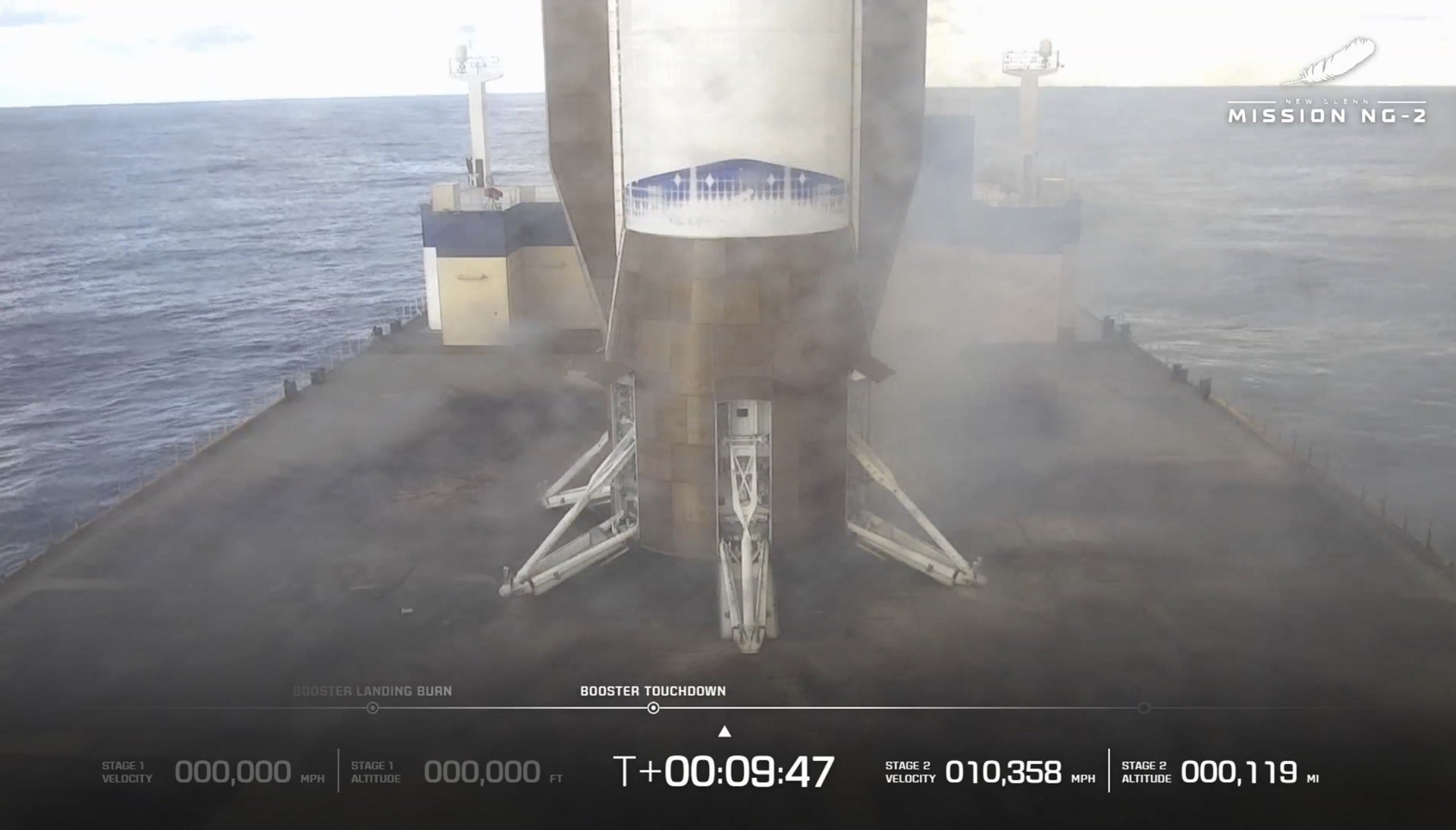 Blue Origin a également mis à disposition un flux vidéo pour observer la descente du booster. La scène, impressionnante, et saisissante avec les cris de joie que l’on entend à l’audio, montre plusieurs séquences clés jusqu’à l’atterrissage sur une barge. Hélas, le flux vidéo n’est pas d’excellente qualité et la lecture tressaute parfois, ou se fige.