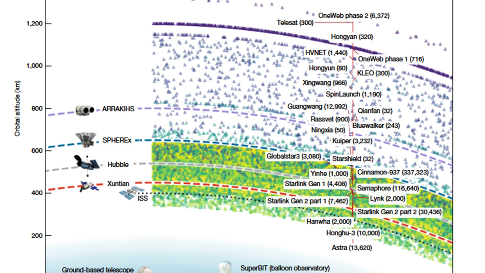 Tous ces instruments orbitent, ou devront orbiter, à des altitudes comprises entre 400 et 800 kilomètres (orbite terrestre basse). À titre de comparaison, la majorité des satellites Starlink évoluent entre 400 et 600 kilomètres, tandis que ceux du projet Leo (ex-Kuiper) se situeront à une altitude légèrement supérieure. Cela sans compter les diverses constellations chinoises prévues au-delà de 800 kilomètres.