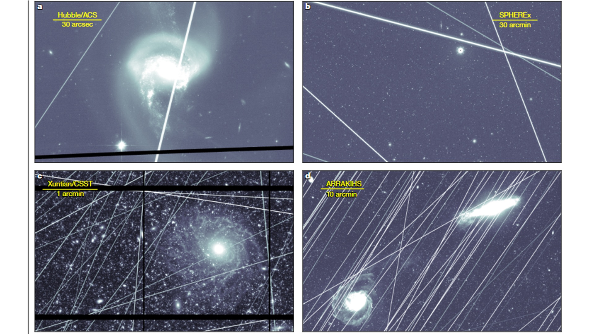 Elles étaient déjà pointées du doigt pour gêner les observations des télescopes optiques au sol, puis également des radiotélescopes dont ils encombraient les fréquences. Désormais, les constellations de satellites se retrouvent aussi (littéralement) dans le viseur des télescopes spatiaux.