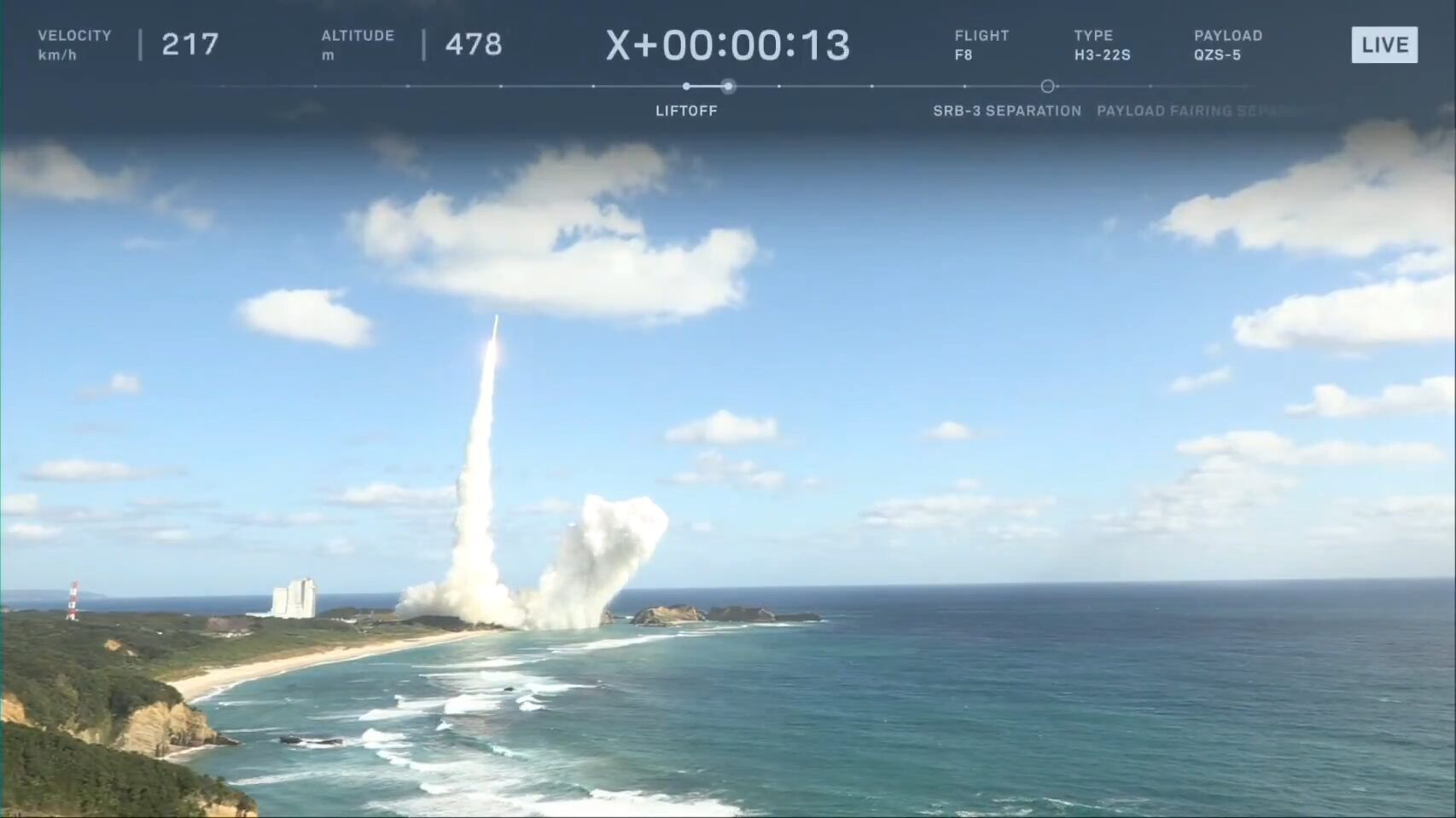 Le lanceur, qui effectuait ici sa septième mission, transportait le satellite Michibiki-5 (ou QZS-5), un maillon important de la constellation QZSS (Quasi-Zenith Satellite System). Malheureusement, la fusée n’est pas parvenue à livrer sa charge utile à bon port, ce qu’a confirmé l’agence dans un communiqué de presse.