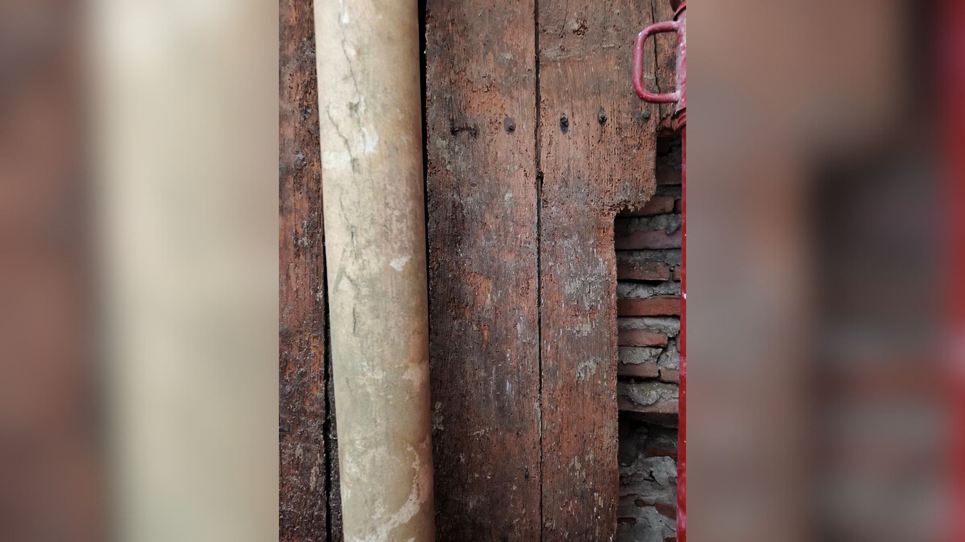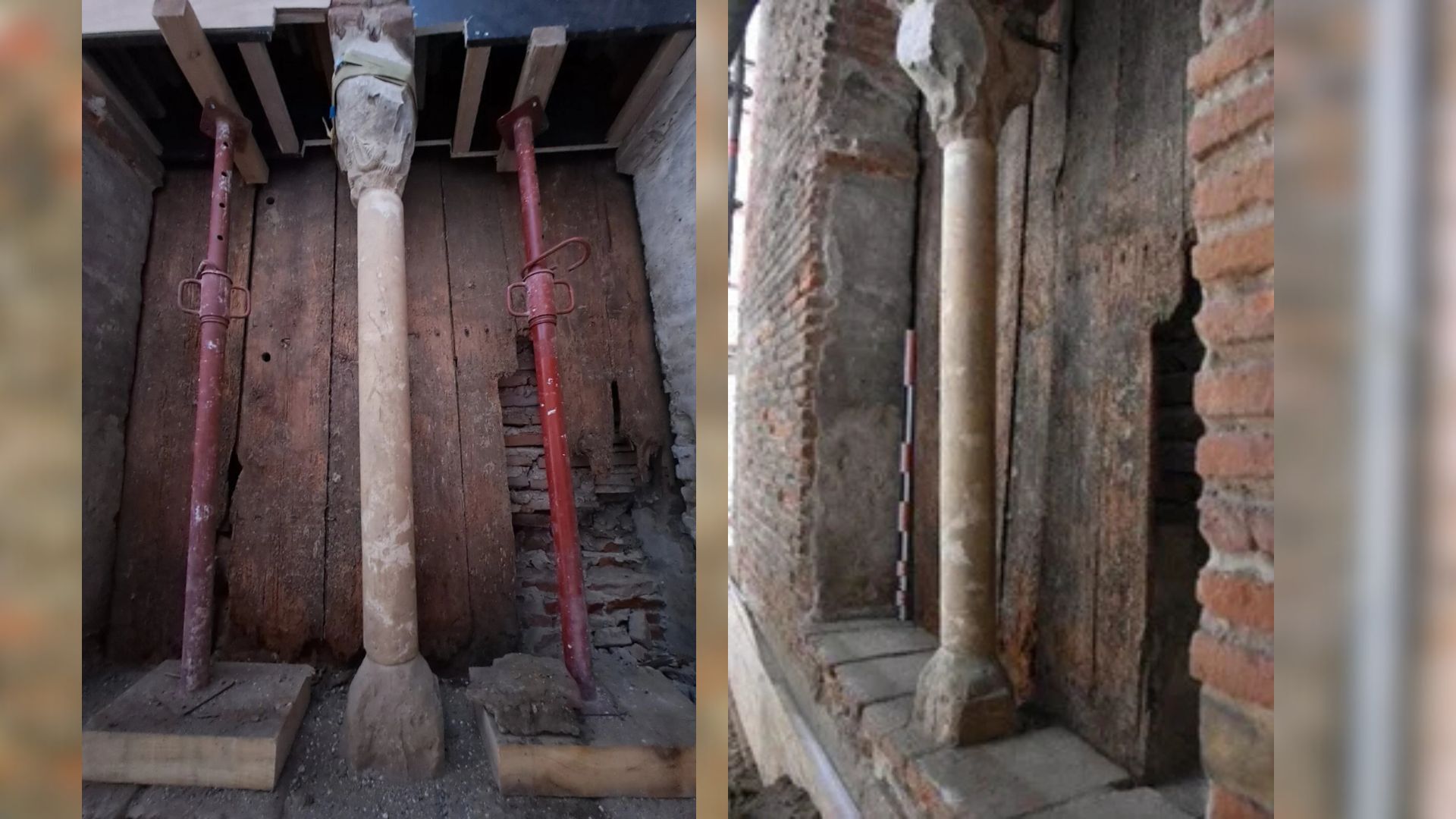 Lors des travaux, une colonne sculptée au niveau de la base et du chapiteau a été découverte au niveau de la baie géminée (l’élément qui sépare les deux trous de fenêtre, c’est cette colonne). Mais, ce qui est réellement surprenant et vraiment inattendu, ce sont les deux volets en bois, mesurant 2,20 mètres de hauteur pour environ 0,90 mètre de largeur, mis au jour.