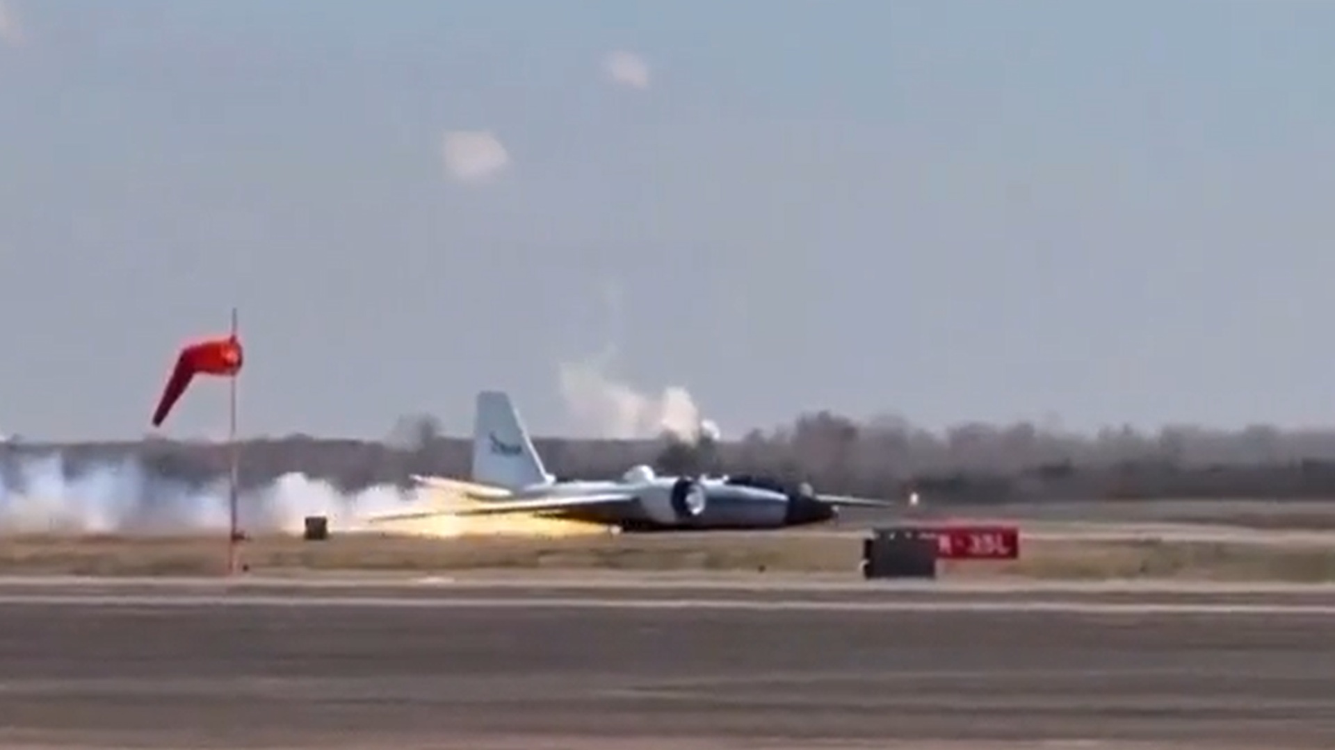 La scène est spectaculaire : sur des images diffusées par la chaîne télé de Houston, KHOU-TV, on découvre un avion militaire en plein atterrissage. Mais soudain, l’appareil se met à glisser sur le ventre, dégageant une impressionnante quantité d’étincelles flamboyantes derrière lui.