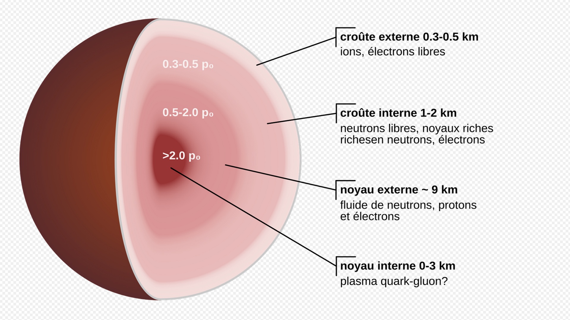 Comme une étoile classique, une étoile à neutrons peut se diviser en plusieurs couches.