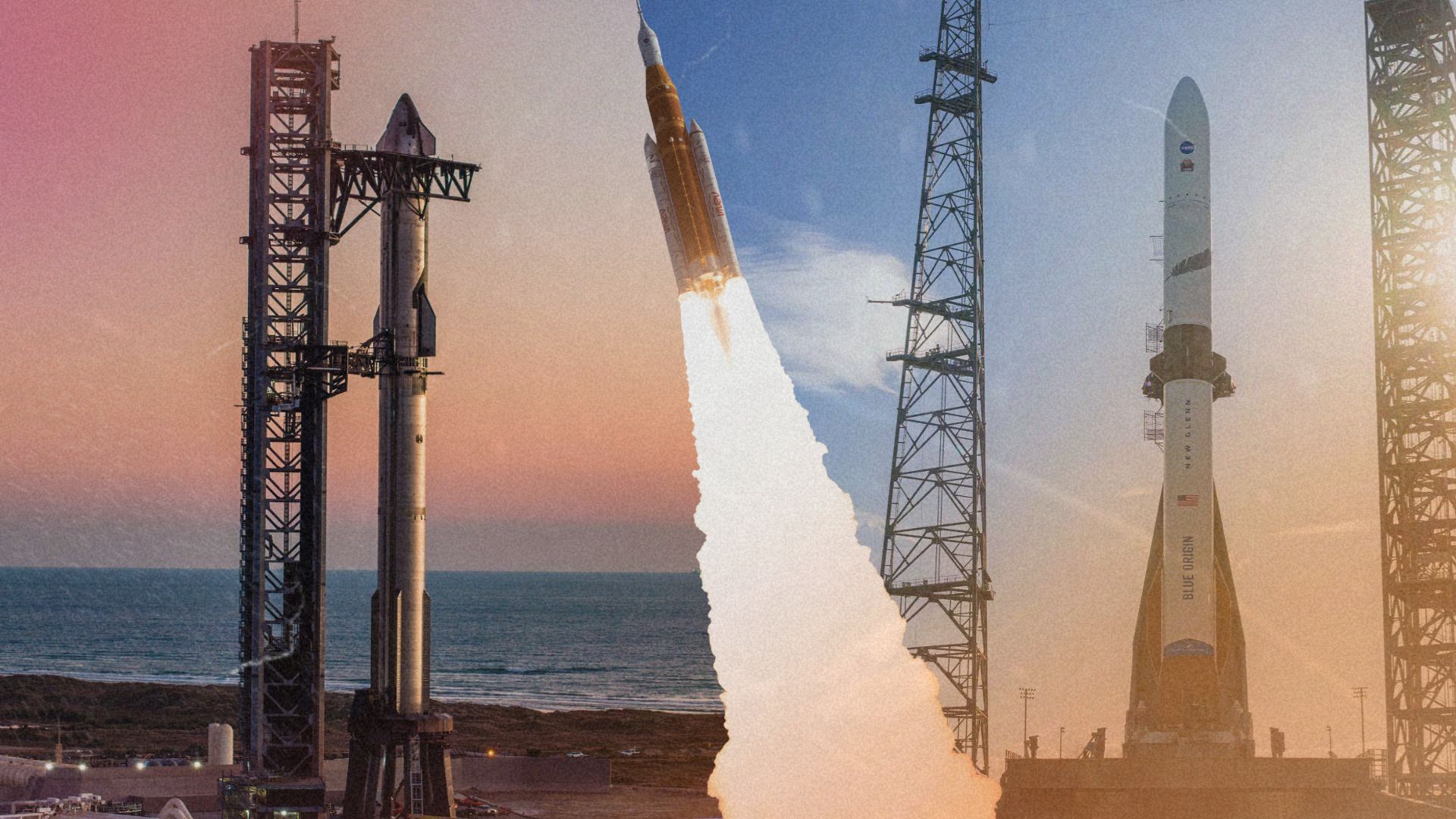 Si les calendriers sont respectés, ce ne sont pas moins de trois fusées géantes qui vont s’envoler en l’espace de trois semaines. Outre la SLS, on attend en effet deux autres énormes lanceurs dans les starting-blocks : la fusée expérimentale Starship, qui doit entamer son douzième vol d’essai, et le tout jeune lanceur New Glenn, pour son troisième lancement.