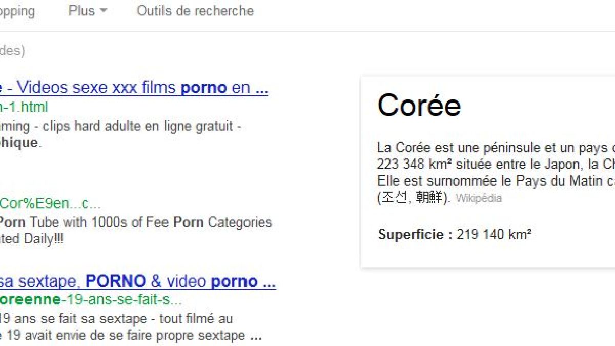 Rares seront en tout cas ceux qui penseront à des contenus pornographiques coréens. Or, c'est pourtant le lien qu'établit Google lorsqu'un internaute tape la requête "Corée" dans le moteur de recherche. Cette curieuse association, repérée sur Twitter par HaDeSss, semble se baser sur l'association automatique entre la base de connaissance Knowledge Graph de Google et les recherches des internautes.