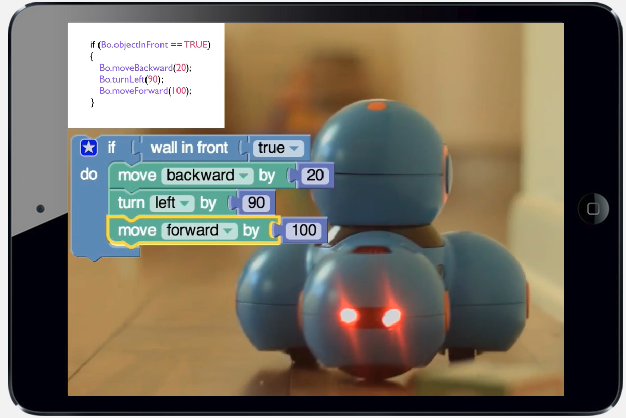C’est à cet effet que quatre associés, dont un ancien haut cadre de Google et l’ancien responsable des équipes de développement logiciel de l’iPod chez Apple, ont créé ensemble Play-i. Plus mignons que les Lego Mindstorms, et destinés aux 5 ans et plus, il s’agit d’un ensemble de robots (pour le moment deux, Bo et Yana) dotés de moteurs et de capteurs, dont les actions peuvent être programmées par l’enfant sur une interface tactile. Soit en saisissant directement des lignes de code, soit de façon plus intuitive en utilisant des interfaces de programmation en langage naturel comme Scratch (développé par le MIT) ou Blocky (par Google). Ces dernières permettent de comprendre la structuration d’un langage de programmation, et la logique qui permet d’aboutir à une action.