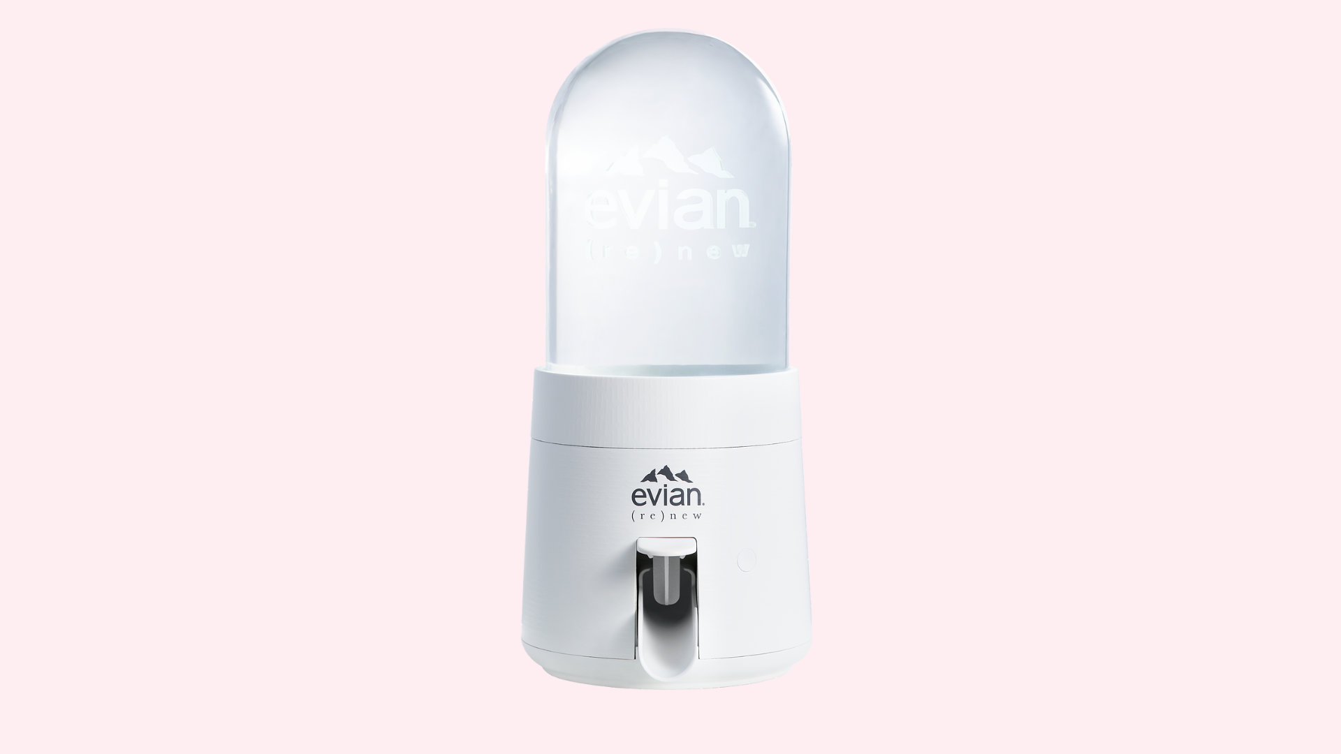 Ce receptacle en plastique pourra contenir 5 litres d’eau. Pour se servir, les utilisateurs et utilisatrices devront appuyer sur un bouton à la base de l’appareil — qu’il sera possible de connecter à une application mobile développée par Evian. Le propriétaire du (re)new sera notifié lorsque le récipient sera presque vide.