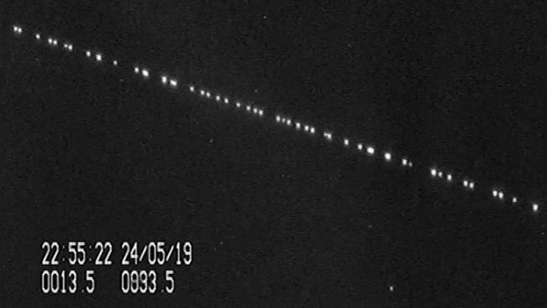 C’est une image qui a rapidement fait le tour du web : peu après la mise en orbite des 60 premiers satellites du futur réseau Starlink, un astronome néerlandais a pu filmer leur passage au-dessus de sa tête. Une certaine féérie se dégage de cette séquence : sous une nuit étoilée, on voit surgir un « train » de points lumineux, dans un alignement en apparence impeccable, traversant à vive allure la voûte céleste.