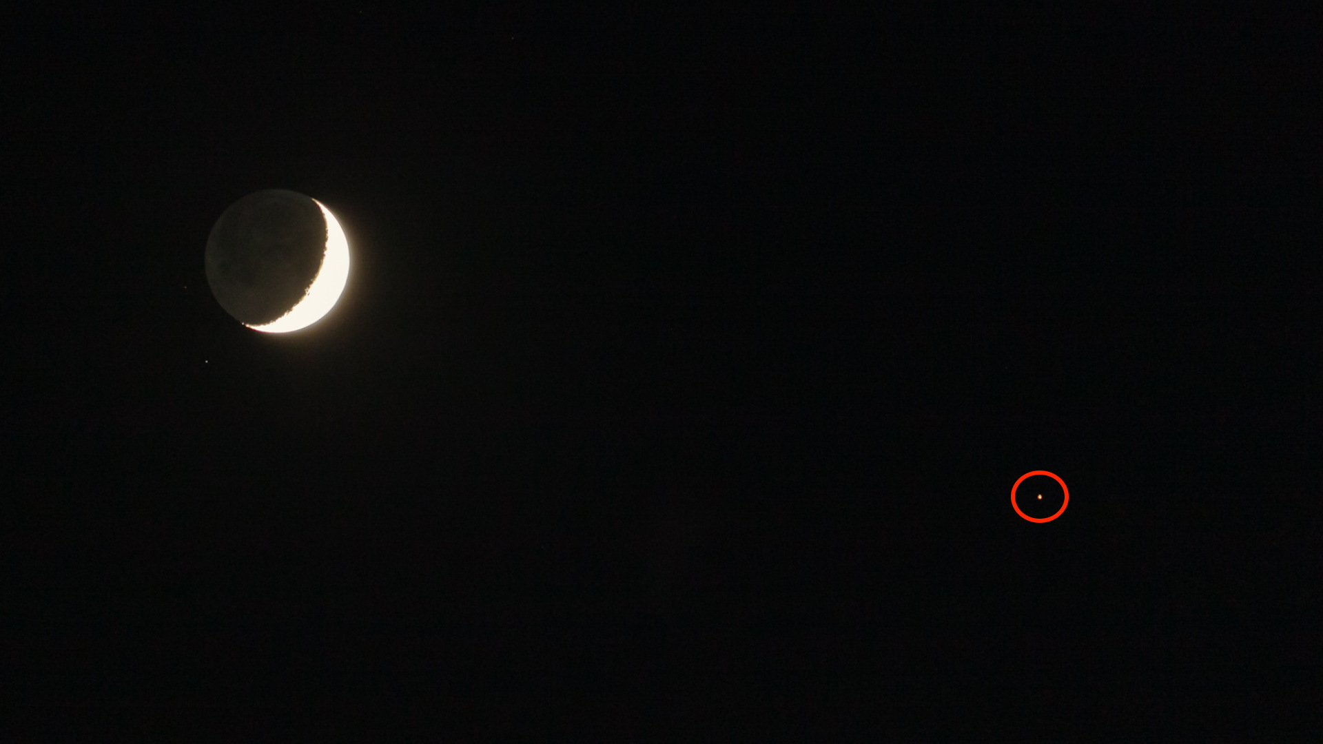La conjonction entre la Lune et Mars n’est pas la dernière qu’il est possible d’observer ce mois-ci. Le 24 mai, la Lune a cette fois-ci rendez-vous avec Vénus le soir — un spectacle prometteur, car la planète paraît très brillante en ce moment.