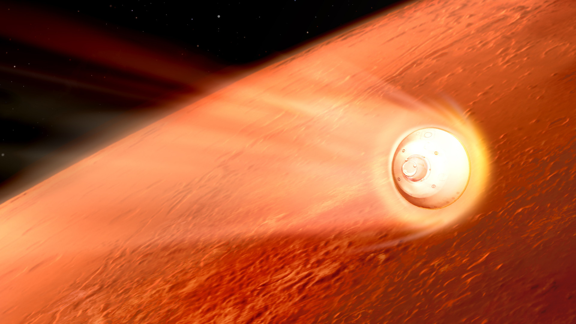 Représentation de l'entrée atmosphérique du rover Perseverance.