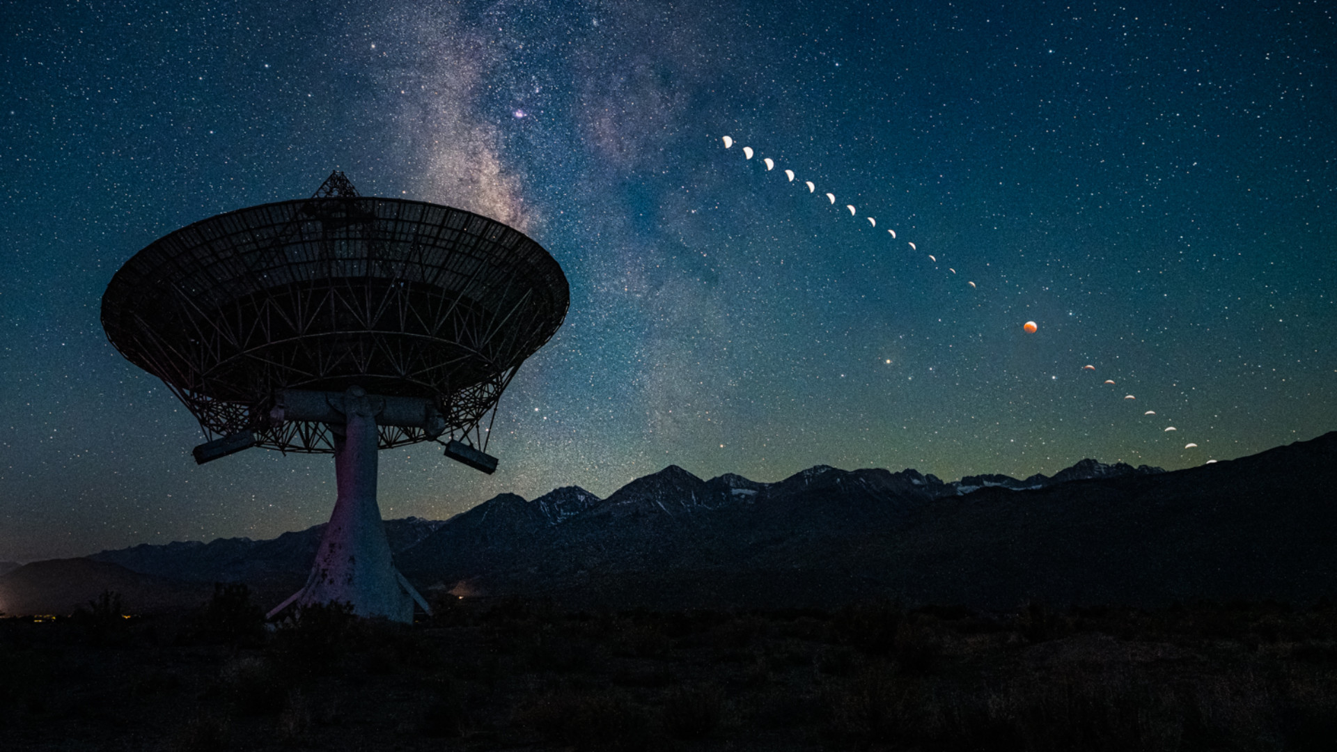 Le site Astronomy Picture of the Day (APOD), qui diffuse chaque jour une photo différente, a choisi un cliché de l’éclipse vue depuis l’ouest de l’Amérique du Nord, au-dessus du massif montagneux de la sierra Nevada. Avec des clichés pris toutes les 5 minutes puis réunis sur cette photo, on peut admirer les différentes étapes de l’éclipse, ainsi que la Voie lactée. Une antenne d’un des radiotélescopes de l’Owens Valley Radio Observatory (OVRO) figure au premier plan.