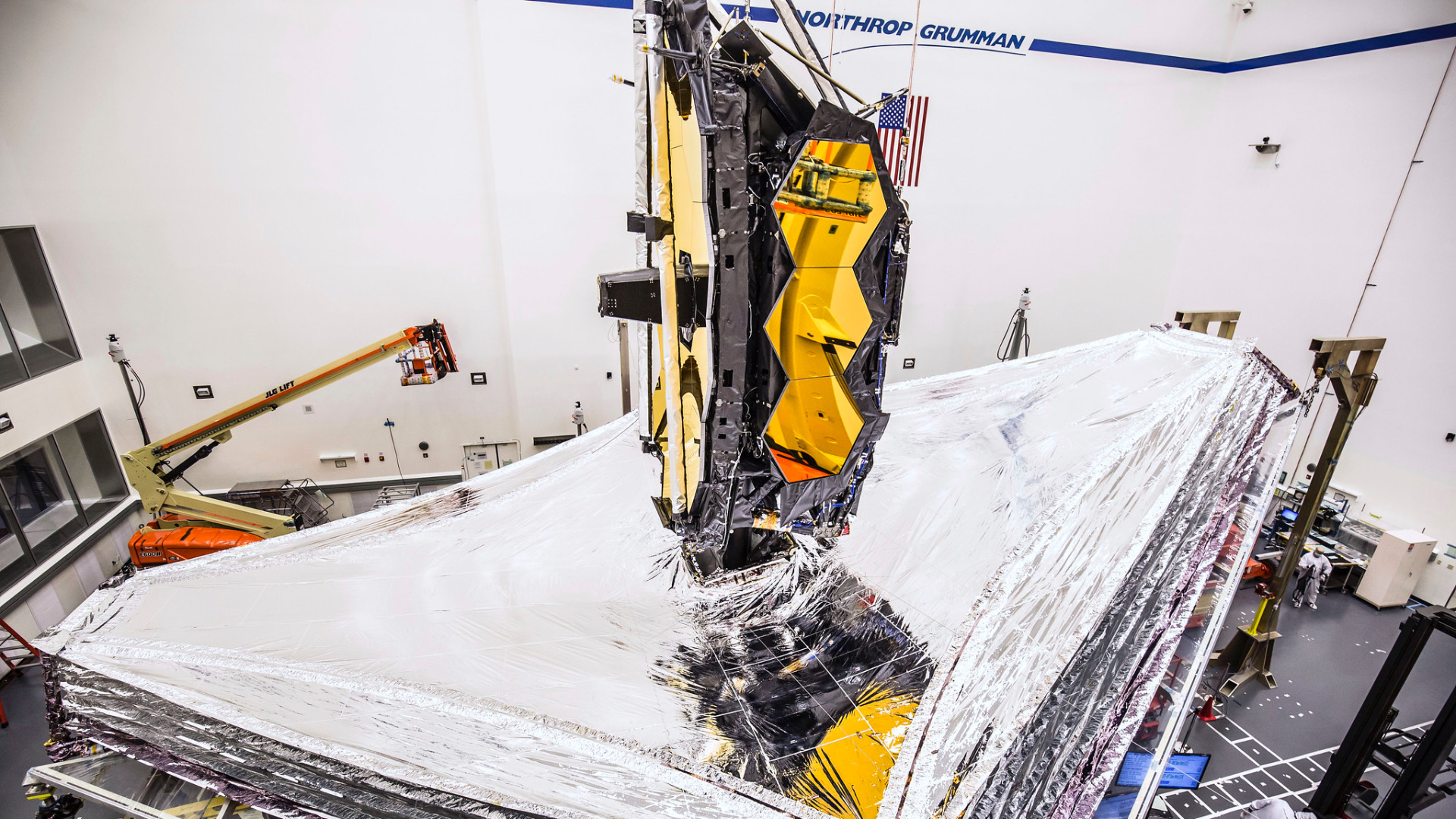 Pour les astronomes, le déploiement de ce bouclier est une phase quelque peu inquiétante. Chacune des 5 « voiles » à tendre fait la taille d’un terrain de tennis (22 mètres de long, 12 mètres de large) et l’épaisseur d’un cheveu. Les 3 couches du bouclier déjà tendues sont celles les plus proches du Soleil. Lorsque l’ensemble des membranes sera déployé, le bouclier servira à protéger le James Webb du Soleil, pour aider à maintenir les instruments dans le froid (-223°C).