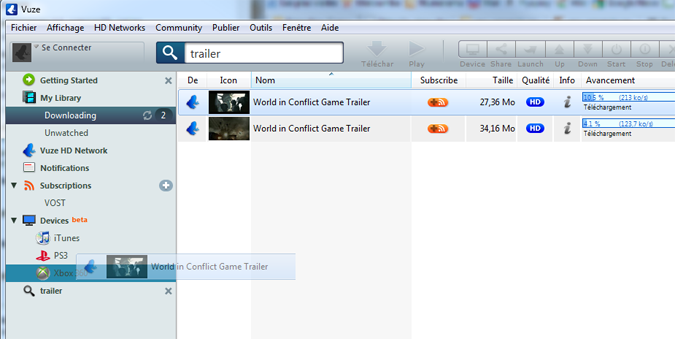 Le client BitTorrent Vuze (anciennement Azureus) continue à se développer et à apporter des fonctionnalités qui pourraient en faire un incontournable pour ceux qui ne recherchent pas la légèreté d’un µTorrent. La nouvelle version 4.2 du logiciel permet de rechercher des contenus sur les principaux moteurs de recherche BitTorrent, de les télécharger, mais aussi désormais de les transférer vers iTunes et de les transcoder pour être lus sur un iPod, un iPhone ou une console de salon Xbox 360 ou PS3. Un modèle de tout-en-un.