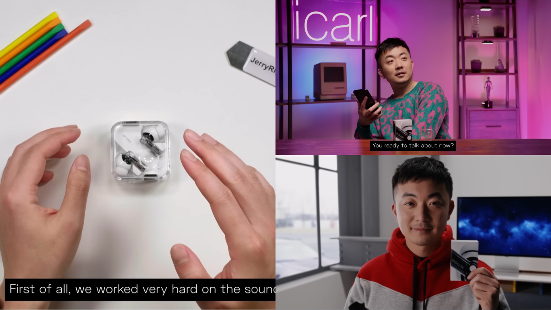 Si la vidéo est marrante, c’est parce que Carl Pei joue le jeu. Le « patron le plus cool de la tech », comme il aime s’en donner l’image, imite la voix sexy/ASMR de JerryRigEverything, se donne à cœur joie de porter le même pull que Marques Brownlee (qui fait une apparition en fin de vidéo) et s’amuse même à parler hindi en parodiant un créateur indien. Les copies sont presque crédibles… et permettent à Nothing de passer des messages positifs sur ses écouteurs, en les testant pour de faux.