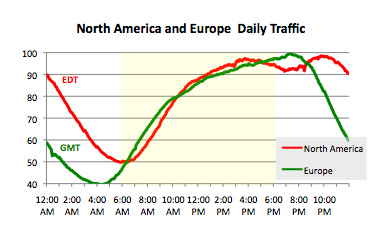 C’est ce qu’il semble se dégager d’une étude menée par Arbor Networks. En relevant des informations provenant de 65 fournisseurs d’accès Internet situés des deux côtés de l’Atlantique, la société spécialisée dans la fourniture de solutions de contrôle de la sécurité des services pour les réseaux internationaux a révélé une différence majeure entre les internautes américains et européens sur l’utilisation d’Internet le soir.