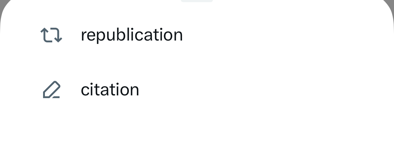 - Retweet = republication : là aussi, l’application contredit Elon Musk. Le milliardaire dit qu’il faut repenser cette interface, laissant supposer la fin des retweets, mais l’application parle de « republication », ce qui est moins sexy qu’un retweet. En anglais, on parle d’un « repost ».