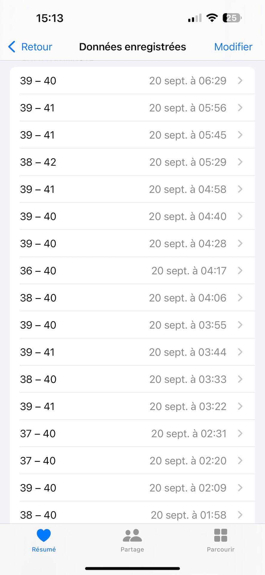Mais Apple, dans sa volonté de bien faire, oublie un peu un public dont je fais partie : les personnes qui font beaucoup de sport et, par conséquent, et aussi pour des raisons génétiques, ont un cœur qui ne bat pas vite.