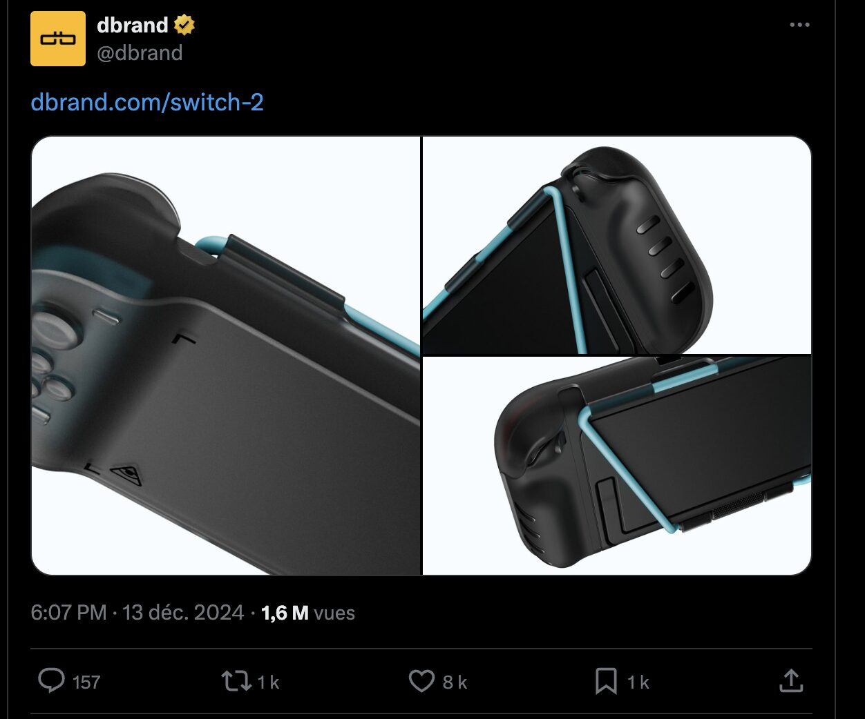 En revanche, il est fortement possible que Dbrand dispose de maquettes fidèles à la réalité, afin de concevoir ses propres coques et de les commercialiser dès le lancement de la console (comme tous les accessoiristes avant chaque nouvel iPhone, par exemple). Pourquoi briser le secret et tout publier maintenant ? Sans doute par rancœur envers Nintendo, qui lui refuse peut-être un partenariat officiel. Le design de la Switch 2 est sûrement celui-ci, même si le produit de Dbrand ne peut pas s’allumer.