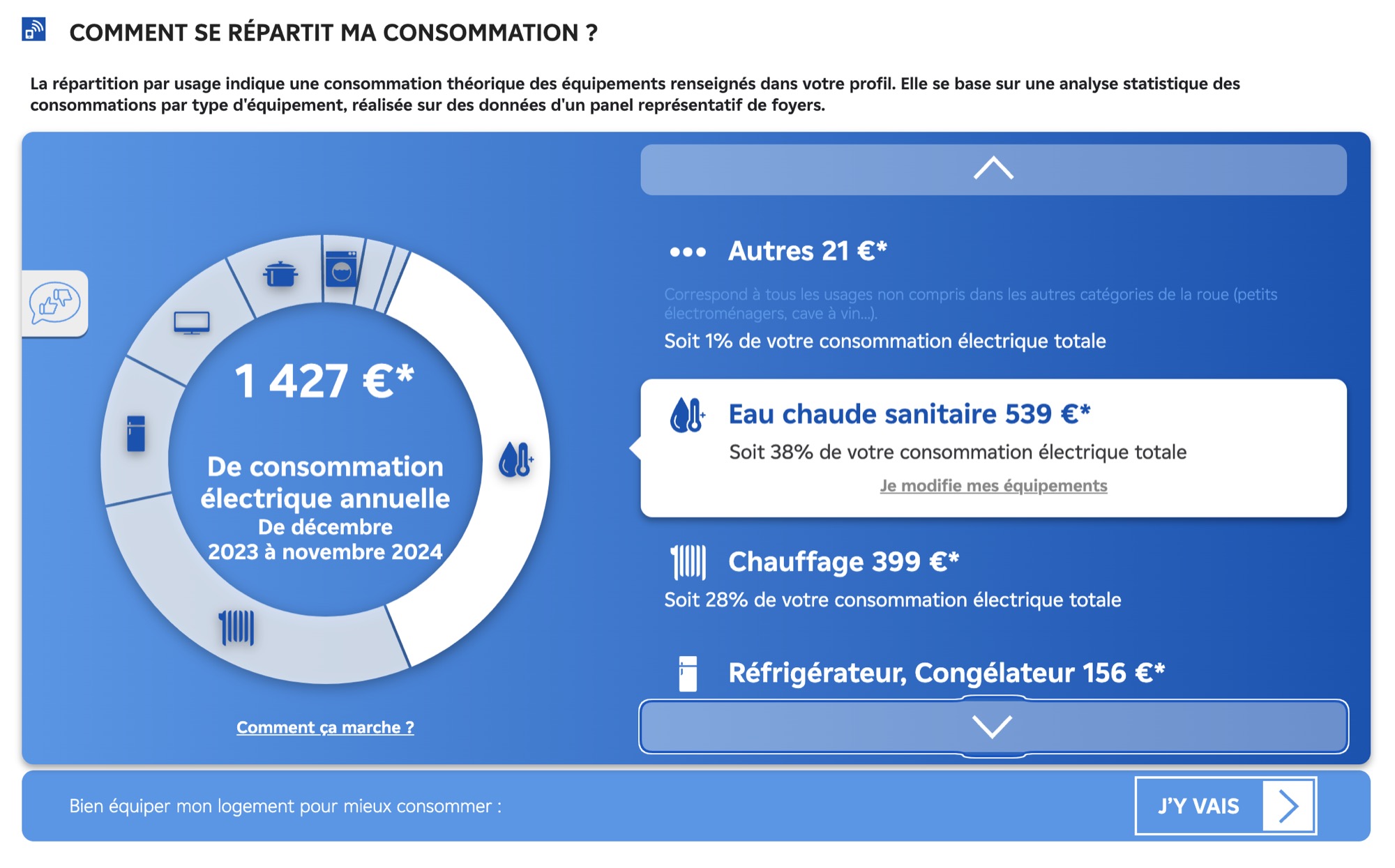 L’idée derrière ce genre de suivi est assez louable, bien qu’elle manque cruellement d’explications. En effet, pour la plupart des foyers, une indication de la consommation ne permet pas de savoir d’où elle vient précisément : est-ce la télévision à 21 heures, la machine à laver, le frigo ou la bouilloire qui a provoqué un pic de consommation ? Et surtout, une fois que l’on a vu un graphique de consommation, que peut-on en faire ? Avoir l’information ne suffit pas si on a aucune idée de l’impact réel sur une facture, ni sur la possibilité de baisser cette consommation.