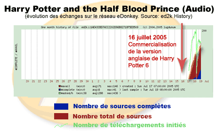 (notez qu’ici le nombre largement majoritaire de sources complètes, dès les premières heures, montre une réelle volonté de partager l’œuvre sur le réseau eDonkey, après l’avoir obtenue par d’autres biais)