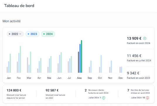 Plus intéressant encore : en reliant votre compte bancaire à la plateforme de manière sécurisée, vous pouvez apprécier la matérialité de votre activité en un clin d’œil. L’idée est la même avec l’outil de paiement en ligne, qui simplifie le règlement des factures pour vos clients et optimise le processus.