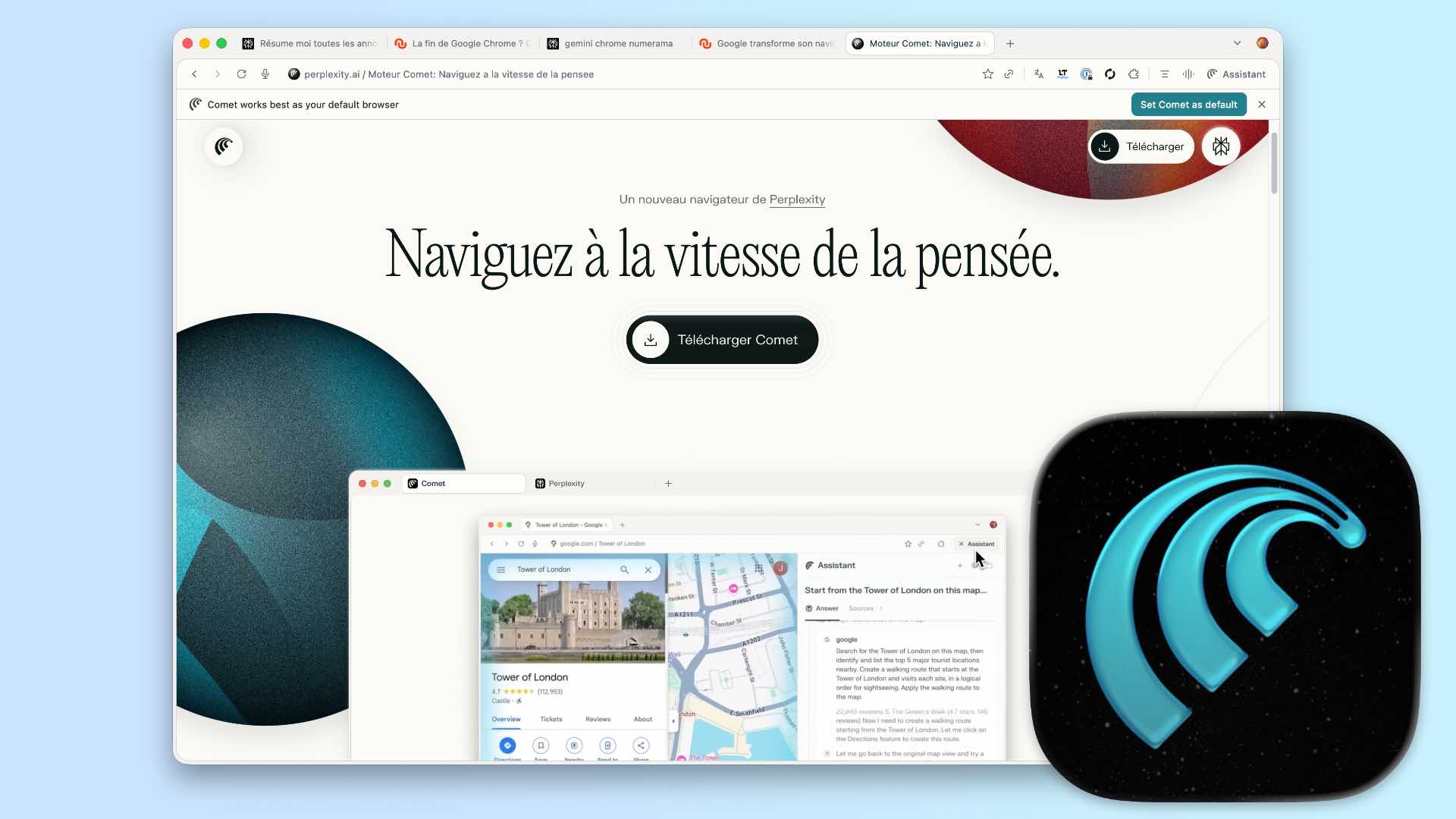En février 2025, Perplexity avait annoncé son intention de concurrencer Google Chrome. La startup de San Francisco a lancé Comet, un navigateur IA qui utilise Perplexity comme moteur de recherche par défaut et dispose de fonctions intelligentes pour résumer une page ou interroger l’assistant sans ouvrir un onglet. Comet était jusque-là accessible sur invitation, avec un accès accéléré pour les abonnés Perplexity Max, à 200 dollars par mois. Il est disponible gratuitement depuis le 2 octobre.