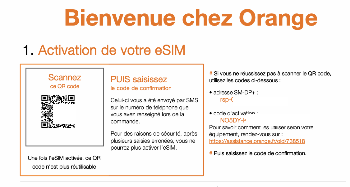 Plus tard, en tentant de transférer l’eSIM de l’iPhone 17 Pro Max vers l’iPhone Air chez Orange, j’ai eu un nouvel échec. Il m’a fallu refaire la procédure et obtenir un nouveau QR Code qui, chez Orange, n’est valable qu’une seule fois. La moindre erreur de configuration implique de demander un nouveau code. Une approche différente de celles de SFR et Free, qui disent au client de conserver le QR code en cas de changement d’appareil.