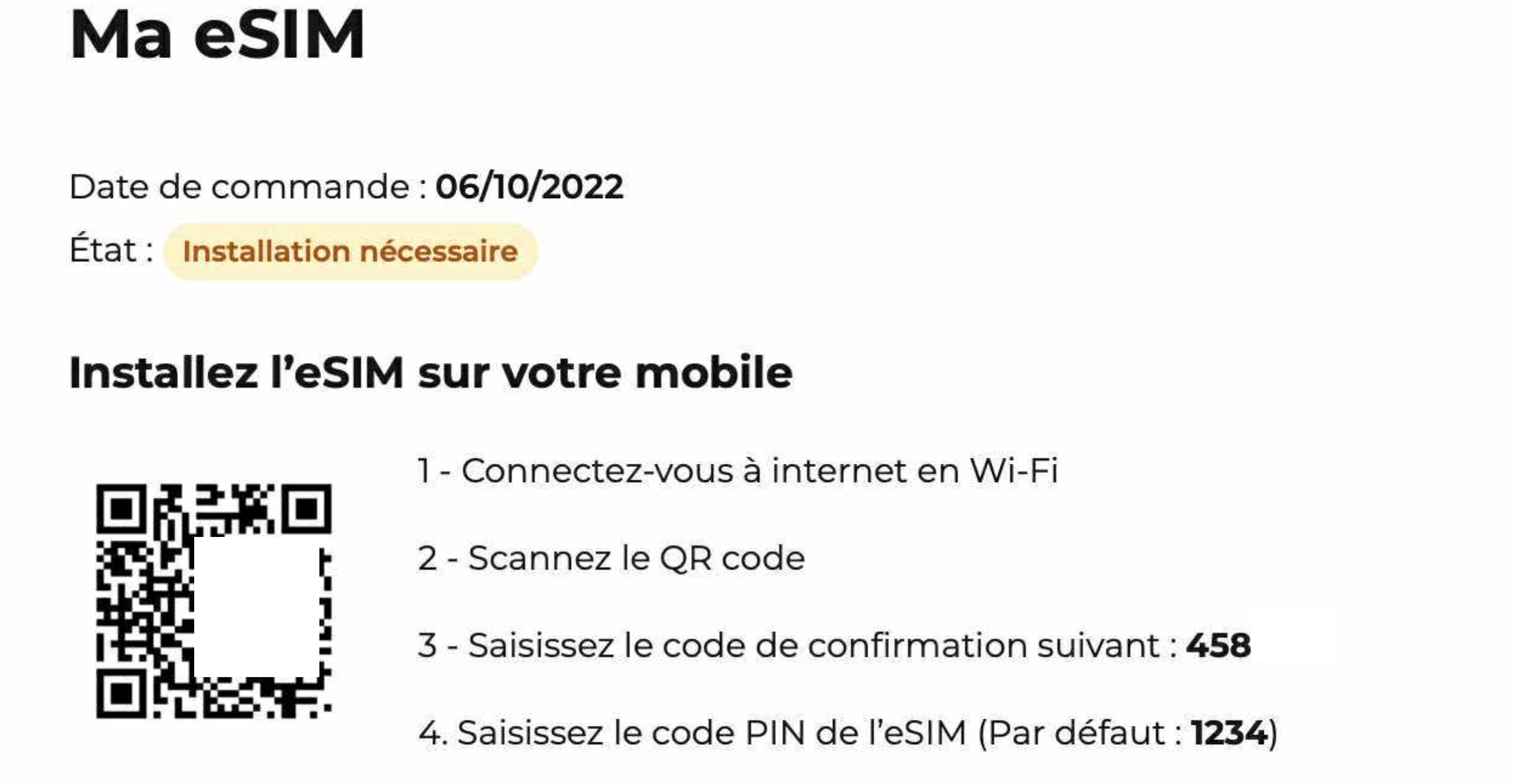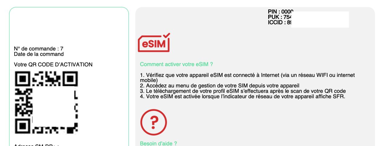 - Depuis l’espace-client, j’ai tenté de demander une nouvelle eSIM. Problème : il faut indiquer un code reçu par SMS. Très intelligent ça… C’est évidemment impossible sans réseau.