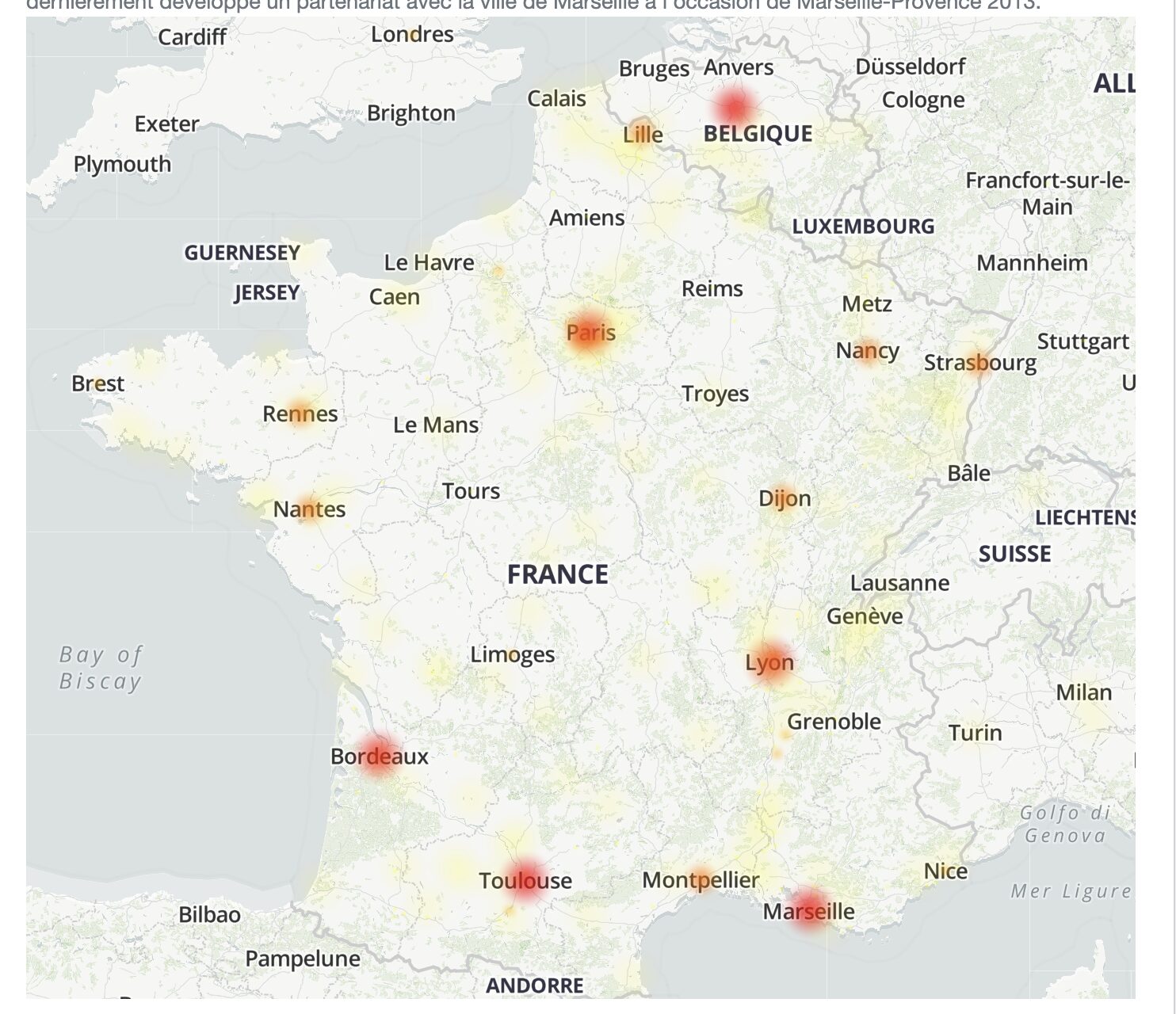 Sur Twitter, la plupart des signalements parlent de pertes de réseau à Paris. La carte de DownDetector, elle, permet de voir que l’incident est aussi étendu à d’autres régions.