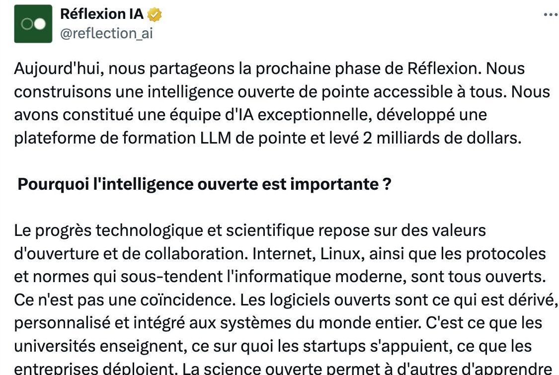 Reflection AI affirme miser sur une approche radicalement open source, combinée à la personnalisation des solutions pour les entreprises, tout en bénéficiant d’un soutien financier, technique et politique massif de l’écosystème américain.