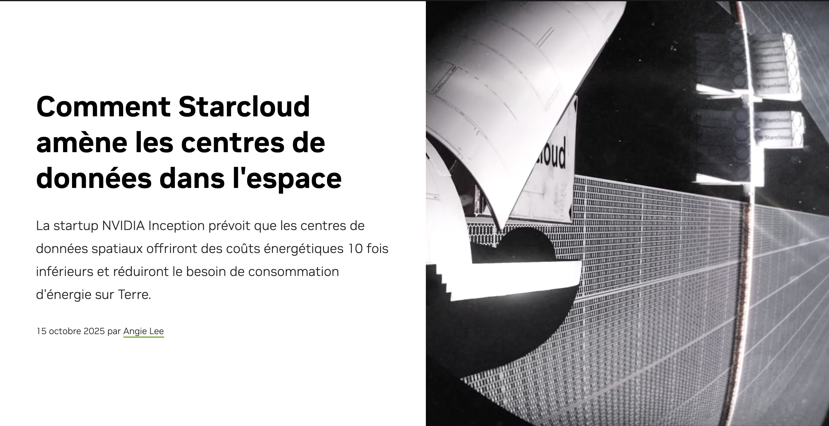 Et si les serveurs de demain quittaient la Terre ? C’est le pari ambitieux — et expérimental — de Starcloud, une startup soutenue par le programme NVIDIA Inception, qui veut bâtir des data centers…en orbite. La firme de Redmond a annoncé le 15 octobre 2025 vouloir déployer des satellites équipés de GPU NVIDIA pour exécuter des calculs intensifs directement en orbite terrestre. Le but, selon les entreprises : répondre à la hausse exponentielle des besoins énergétiques liés à l’IA, tout en réduisant son empreinte écologique.