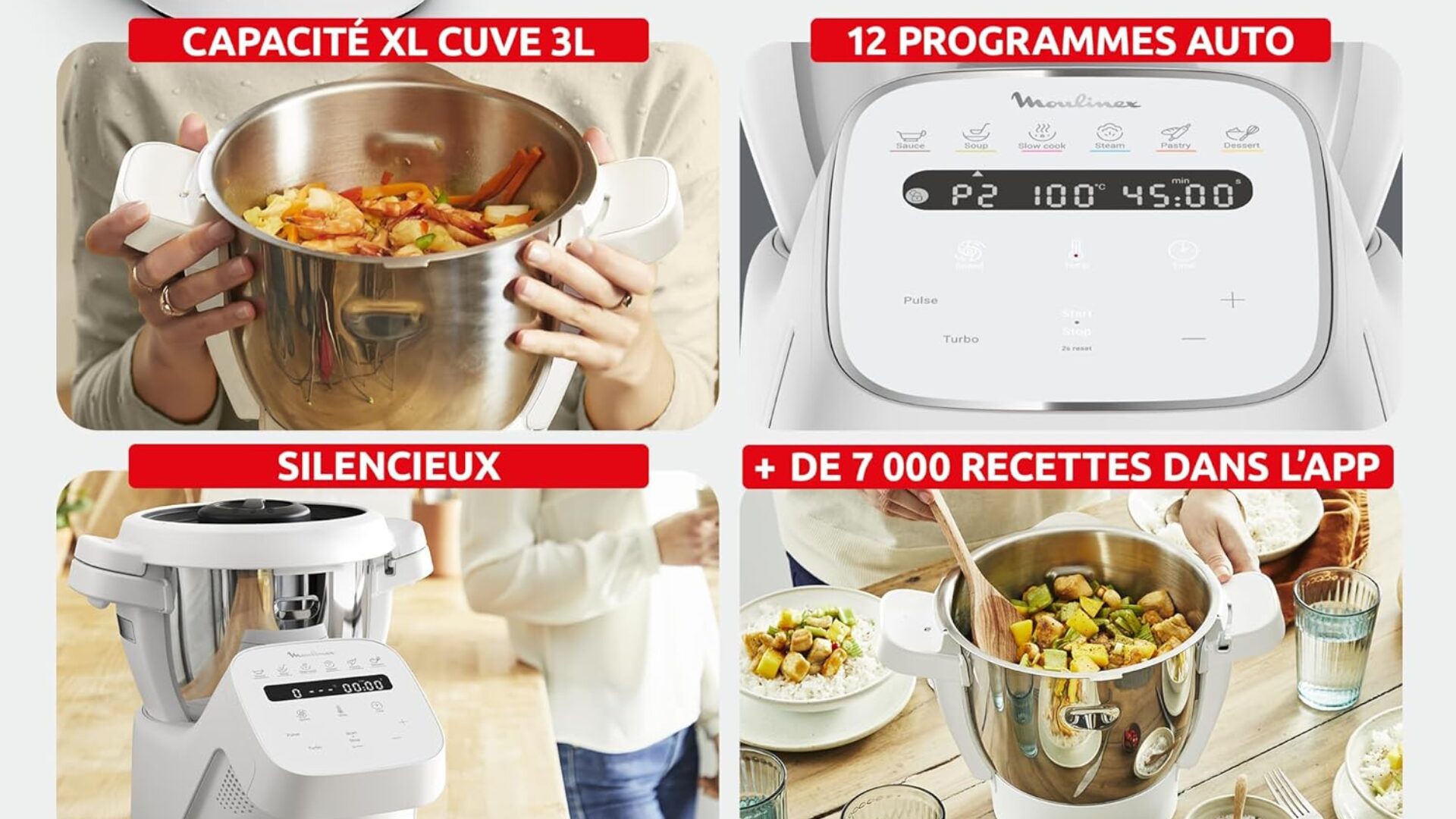 Si vous n’avez ni le temps ni l’envie de passer des heures en cuisine, investir dans un robot cuiseur peut vite changer le quotidien. Bien sûr, tout le monde n’a pas le budget pour un Thermomix, qui reste la référence du marché, mais dont le prix freine souvent l’achat. Le Moulinex dont il est question ici constitue une excellente alternative : il propose plusieurs modes de cuisson pour préparer une grande variété de plats, sans multiplier les appareils sur le plan de travail… et surtout, pour bien moins cher que le Thermomix lorsqu’il est en promotion.