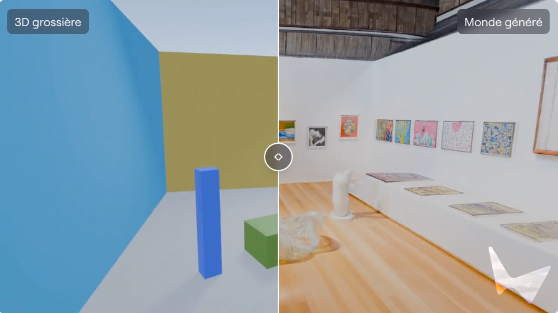 Le résultat est assez bluffant, mais World Labs prévient : les prompts textuels offrent un contrôle limité, l’IA étant obligée d’inventer tout ce que le texte ou la photo ne décrit pas. C’est notamment à ce moment que la mécanique interne de l’outil se met en marche. Une fois le texte, la vidéo ou la photo fournie, Marble analyse les données pour en extraire la géométrie implicite (murs, sols, objets), les volumes, les matériaux et les relations spatiales. Une étape comparable à la vision robotique, mais enrichie d’une couche générative. L’IA reconstruit ensuite un environnement complet en trois dimensions, invente les zones hors champ et génère un monde navigable et éditable, comme un niveau de jeu.