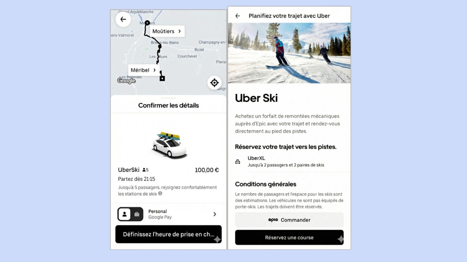 Dans son communiqué, Uber précise qu’en France, des trajets en van à prix fixe et sur réservation à l’avance seront proposés. L’option sera disponible depuis l’aéroport et la gare de Chambéry et depuis les gares de Bourg-Saint-Maurice et Moûtiers vers « les stations les plus populaires de la région ». À noter que cette année, il sera possible de réserver un trajet Uber Ski au sein des stations de Courchevel et Méribel. Les prix iront de 70 € à 400 € en fonction de la destination choisie. Les véhicules pourront accueillir jusqu’à cinq passagers et prendre en charge des skis ou snowboards, précise l’entreprise.