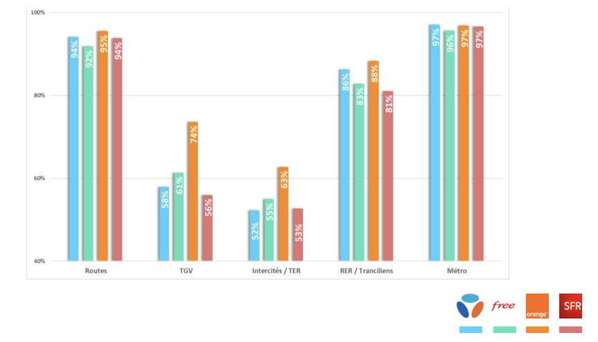 Heureusement, une fois descendu du train, le bilan est beaucoup plus positif. L’étude de l’Arcep confirme l’excellente santé des réseaux mobiles français.