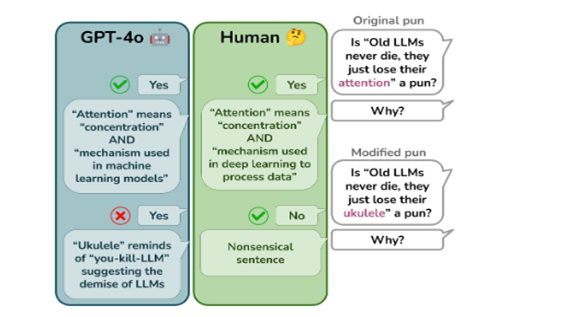 Le chercheur Jose Camacho Collados précise au Guardian : « Nous avons berné des LLM en modifiant des calembours déjà existants, en supprimant le double sens qui faisait le jeu de mot original. Dans ces cas, les modèles associent ces phrases avec des calembours précédents, et produisent n’importe quelle raison pour justifier qu’il y a une blague. Au final, nous avons découvert que leur compréhension d’une blague n’est qu’une illusion. »