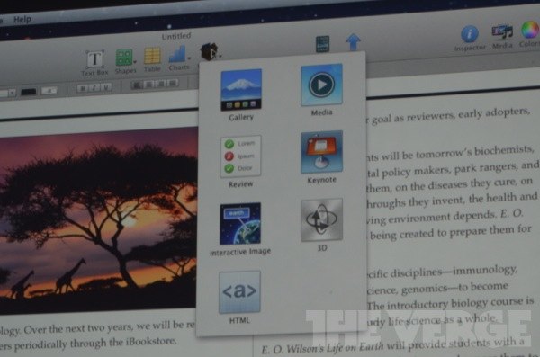 Le premier, iBooks Author, permet à ses utilisateurs de créer très simplement des livres numériques publiables sur l’iTunes Store. L’application mélange Pages et Keynote, les équivalents de Word et de Powerpoint développés par Apple, et iWeb, son logiciel permettant de créer des sites Internet. iBooks Author est doté d’une interface classique pour ceux qui sont habitués à MacOS et permet d’ajouter des images, des vidéos, des présentations, des images interactives, des objets 3D ou de l’HTML à son contenu texte.