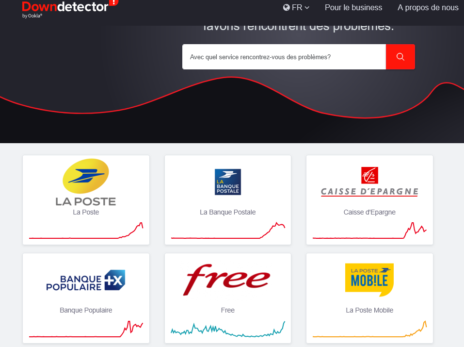 De nombreux signalements se sont accumulés sur Down Detector, le site de référence qui permet au public de signaler lorsqu’un service en ligne ne fonctionne pas correctement. Outre La Banque Postale, on note des hausses du côté de La Poste et La Poste Mobile et l’Identité Numérique (qui repose en partie sur La poste).