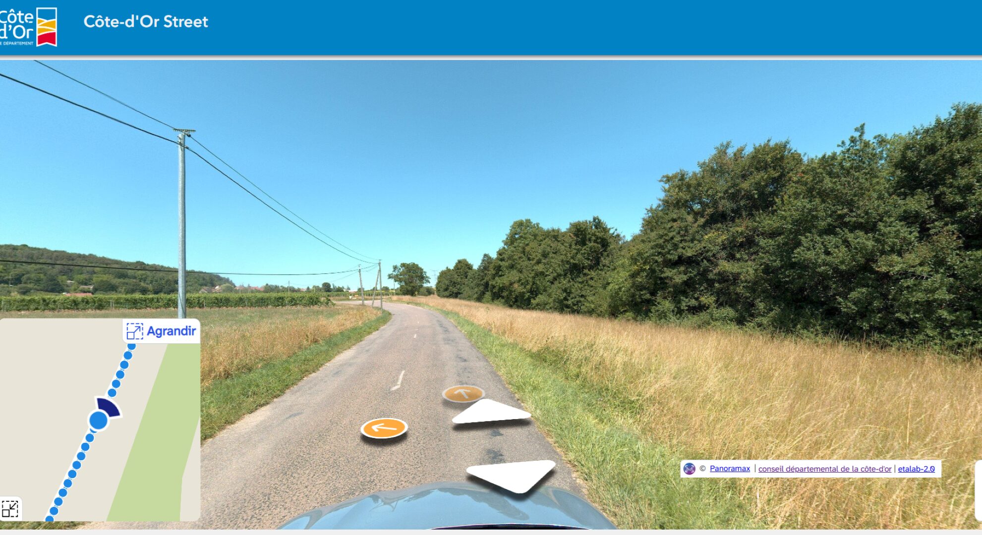 Si vous utilisiez Google Street View pour faire un tour sur les routes de la Côte-d’Or, le département vient de sortir une « alternative souveraine » : Côte-d’Or Street, une numérisation panoramique du réseau routier local à 360° qui ressemble à s’y méprendre au service de navigation virtuelle proposé par le géant américain du web. De quoi redécouvrir les routes Côte d’Oriennes sans quitter le canapé et sans dépendre des Américains.