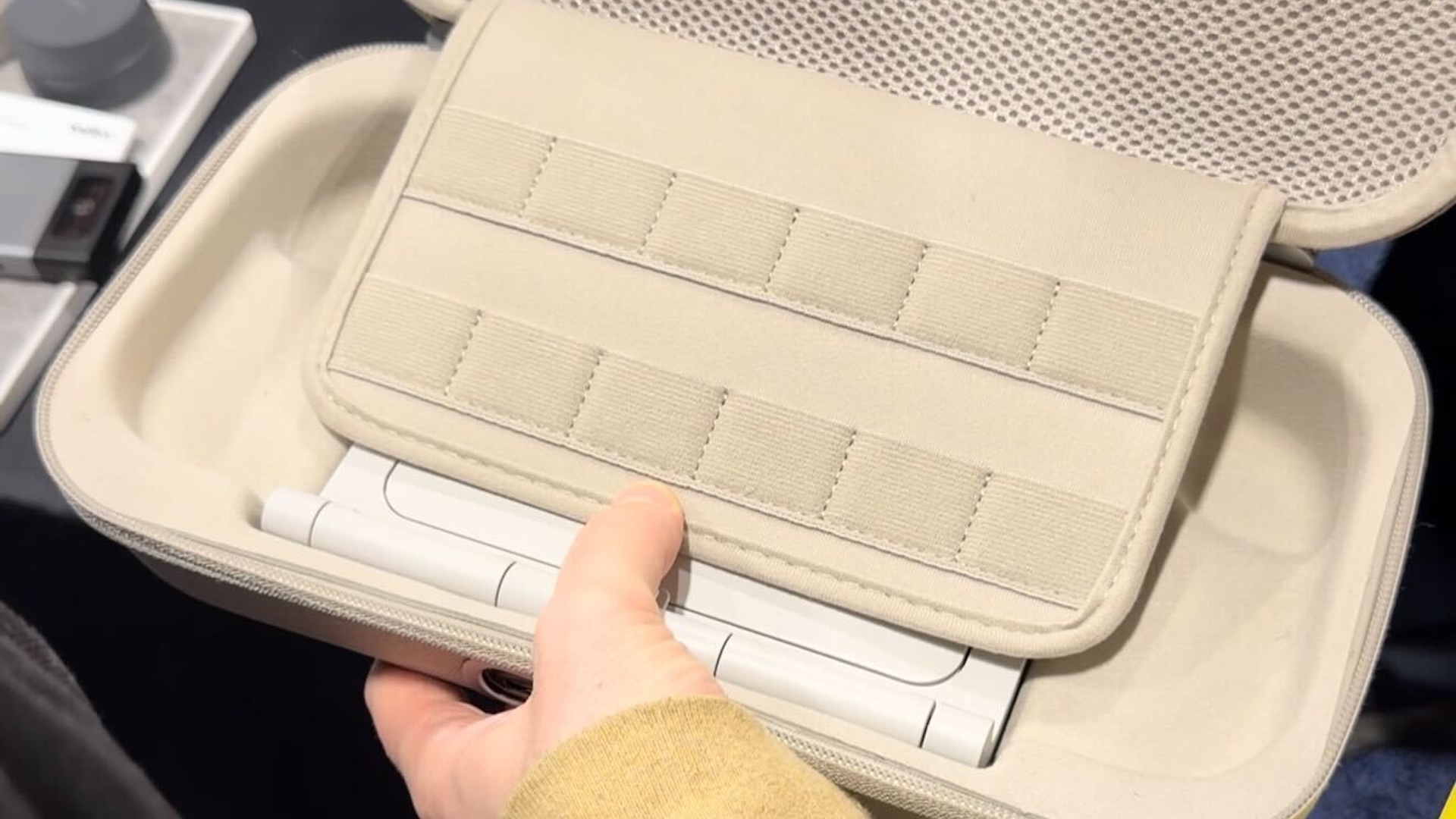 Belkin a bien évidemment pensé à tout avec cette pochette haut de gamme, capable de réunir la Switch 2, douze cartouches de jeu (au sein d’un rabat prévu à cet effet), des câbles, les dragonnes des Joy-Con 2 ou encore une chiffonnette. Il y a même un emplacement pour dissimuler un dispositif de tracking, comme un AirTag conçu par Apple. De cette manière, vous retrouverez plus facilement votre console si vous la perdez — ou, éventuellement, en cas de vol.