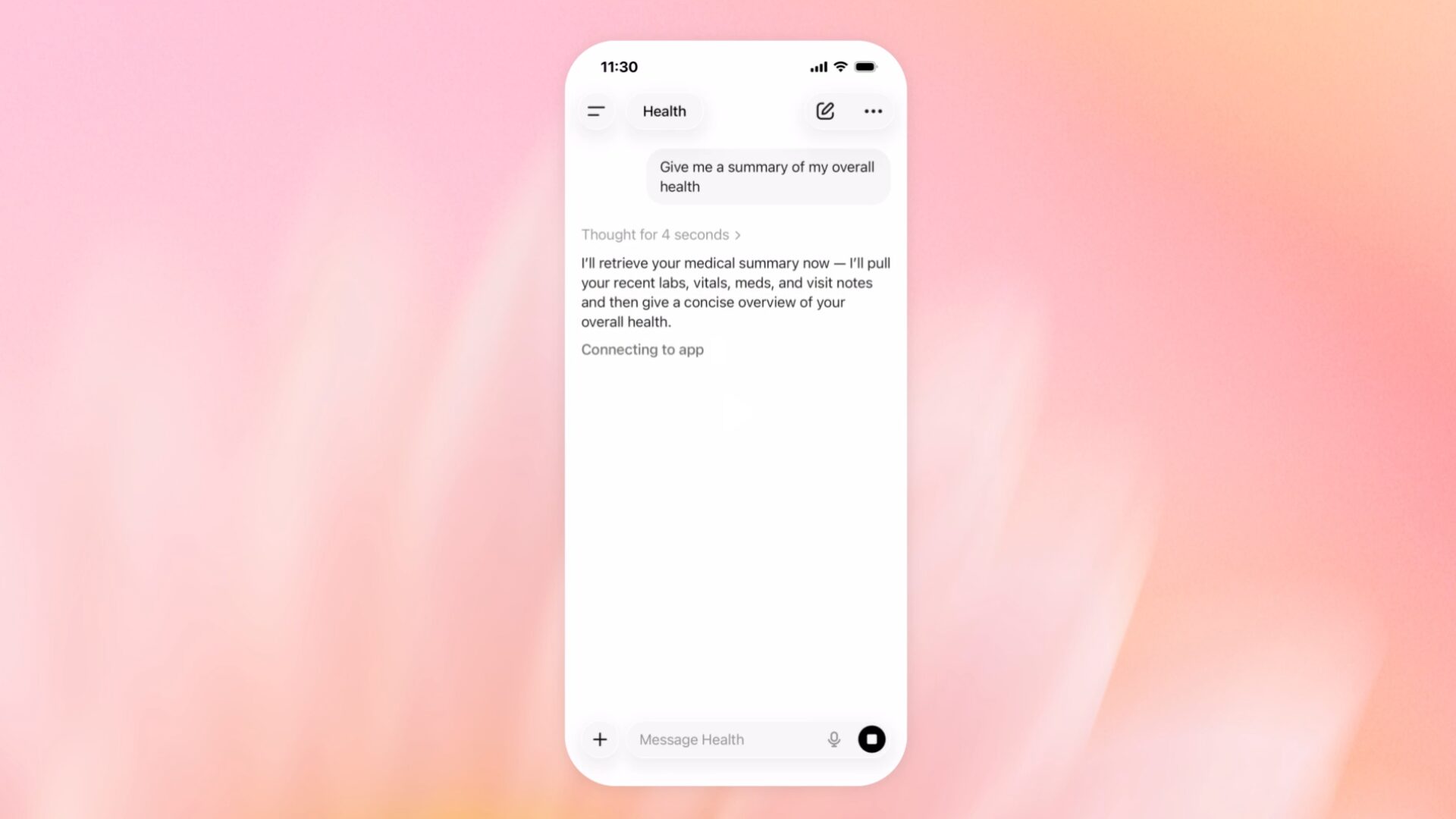 L’entreprise a officialisé le 7 janvier 2026 le lancement de ChatGPT Health, un nouvel espace intégré au chatbot et dédié à la santé et au bien-être. Une annonce qui intervient alors que « plus de 230 millions de questions liées à la santé sont posées chaque semaine à ChatGPT », souligne le communiqué de la firme américaine.