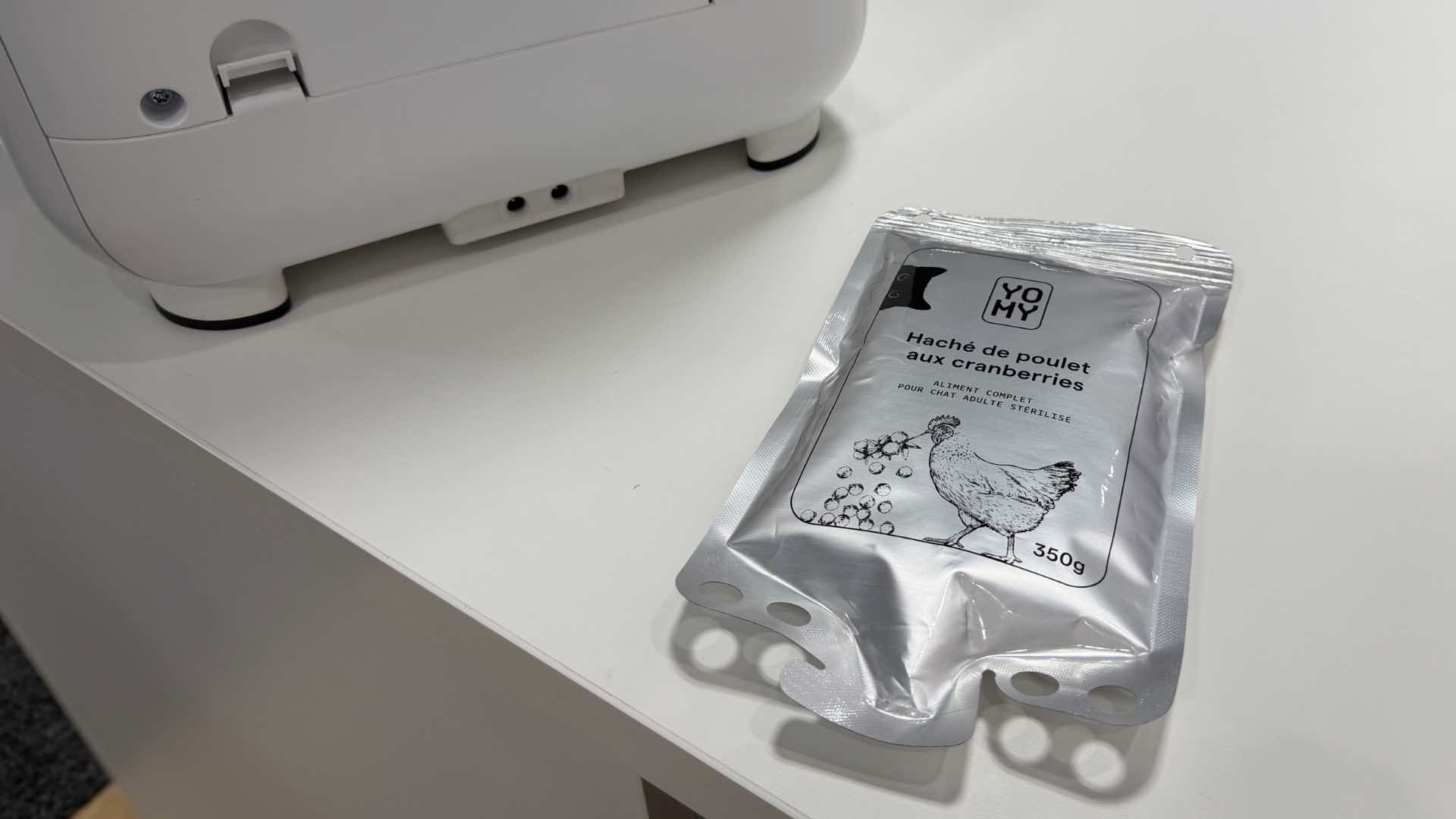 Le modèle économique de Yomy est hybride : vous pouvez utiliser n’importe quelle marque de croquettes dans le réservoir dédié, mais vous devrez acheter les recharges de pâtée Yomy pour la partie humide. Une décision qui s’explique par son système de conservation : là où la pâtée classique s’oxyde et peut dégager de mauvaises odeurs après quelques heures à l’air libre, la machine de Yomy utilise des recharges propriétaires hermétiques. Le système est breveté : une fois ouverte dans la machine, la nourriture humide reste fraiche plus d’une semaine sans avoir besoin d’être réfrigérée.