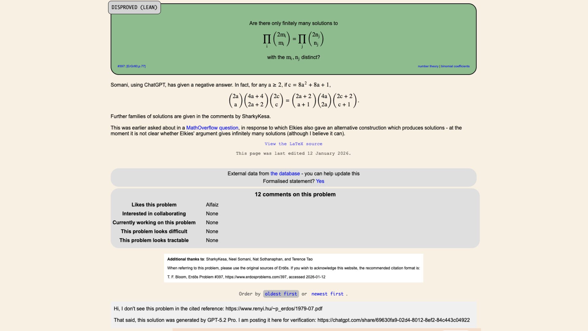 Ce n’est naturellement pas la première fois que quelqu’un s’intéresse à ce problème : des mathématiciens humains en avaient déjà trouvé au moins une solution. Pour autant, cette preuve « classique » n’était ni largement diffusée, ni formalisée de manière rigoureuse ou vérifiable par ordinateur, si bien que le problème restait officiellement listé comme ouvert sur erdosproblems.com.